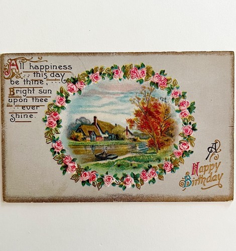 Happy Birthday Greeting Postcard 1910s Pink and 35 similar items