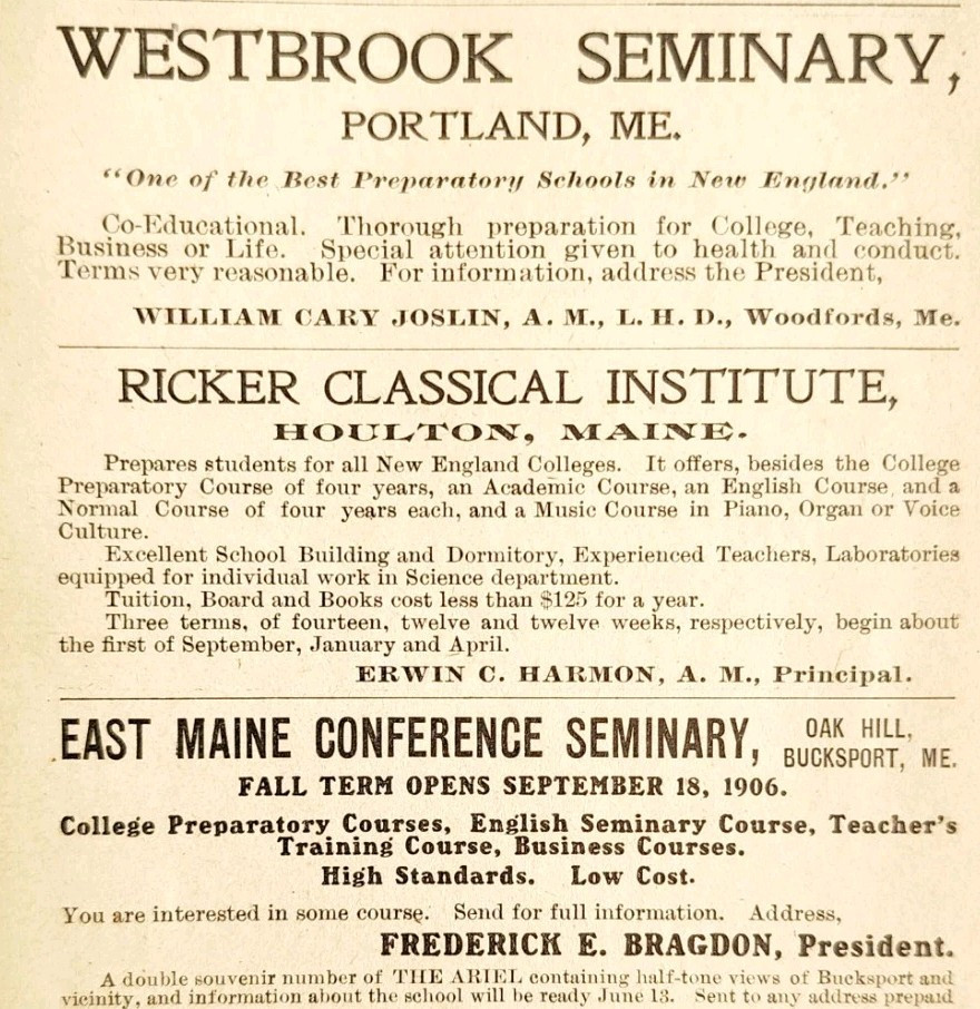 1906 Maine Academies Seminaries Institutes Advertisement College Education E17H