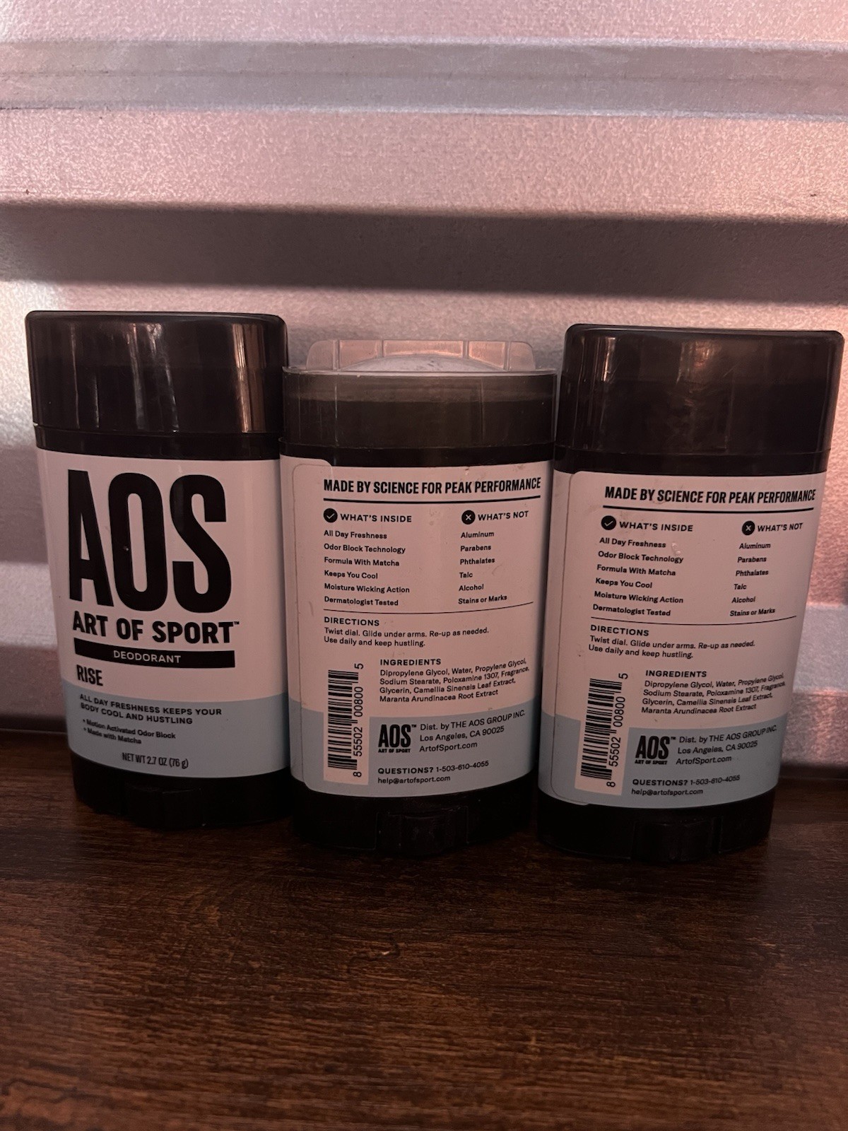 AOS Art Of Sport RISE All Day Freshness Aluminum-Free Deodorant, 2.7 OZ 3 Pack.