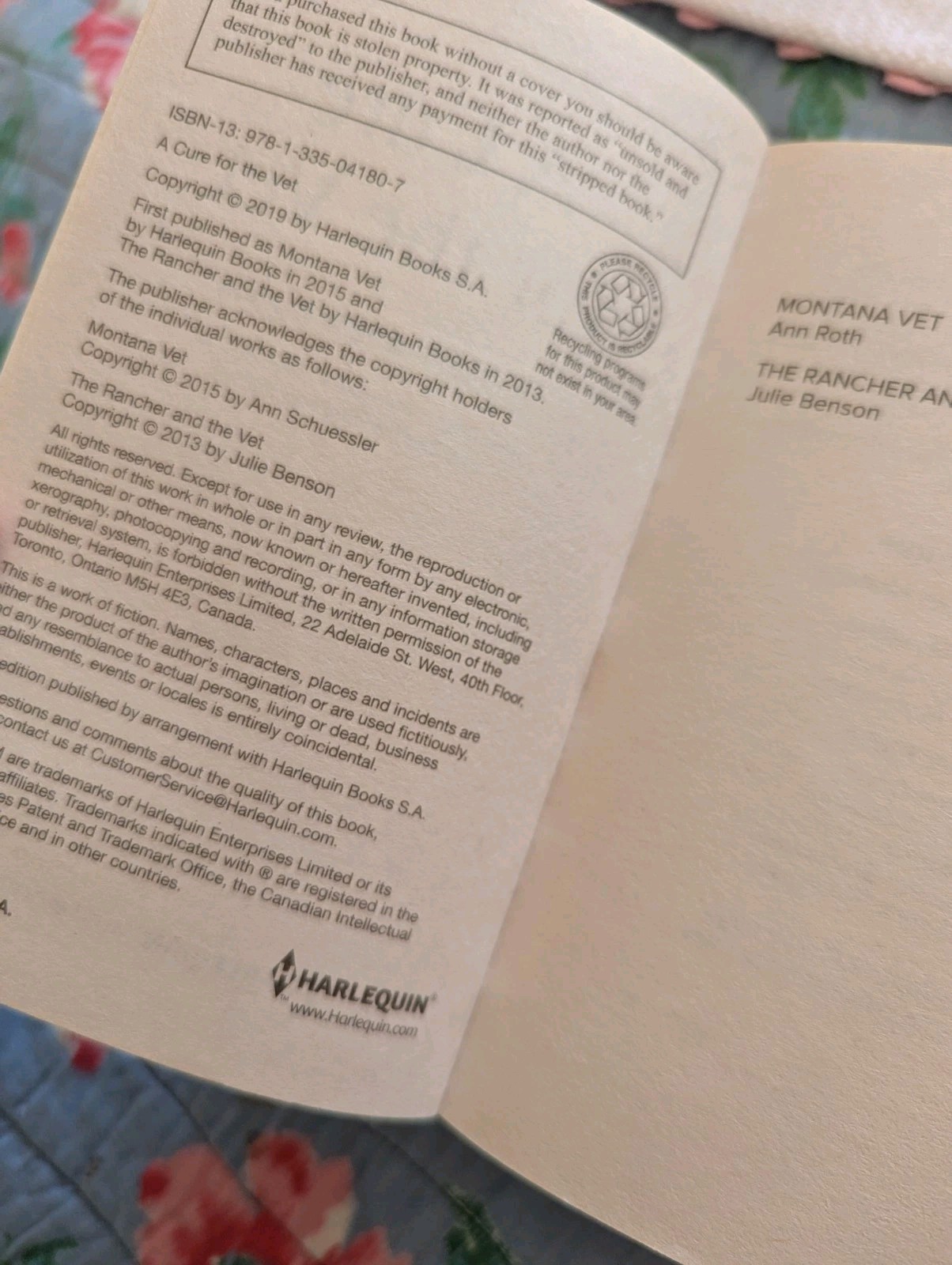 A Cure for the Vet Mass Market Paperbound Julie Benson Ann Roth Harlequin Dogs