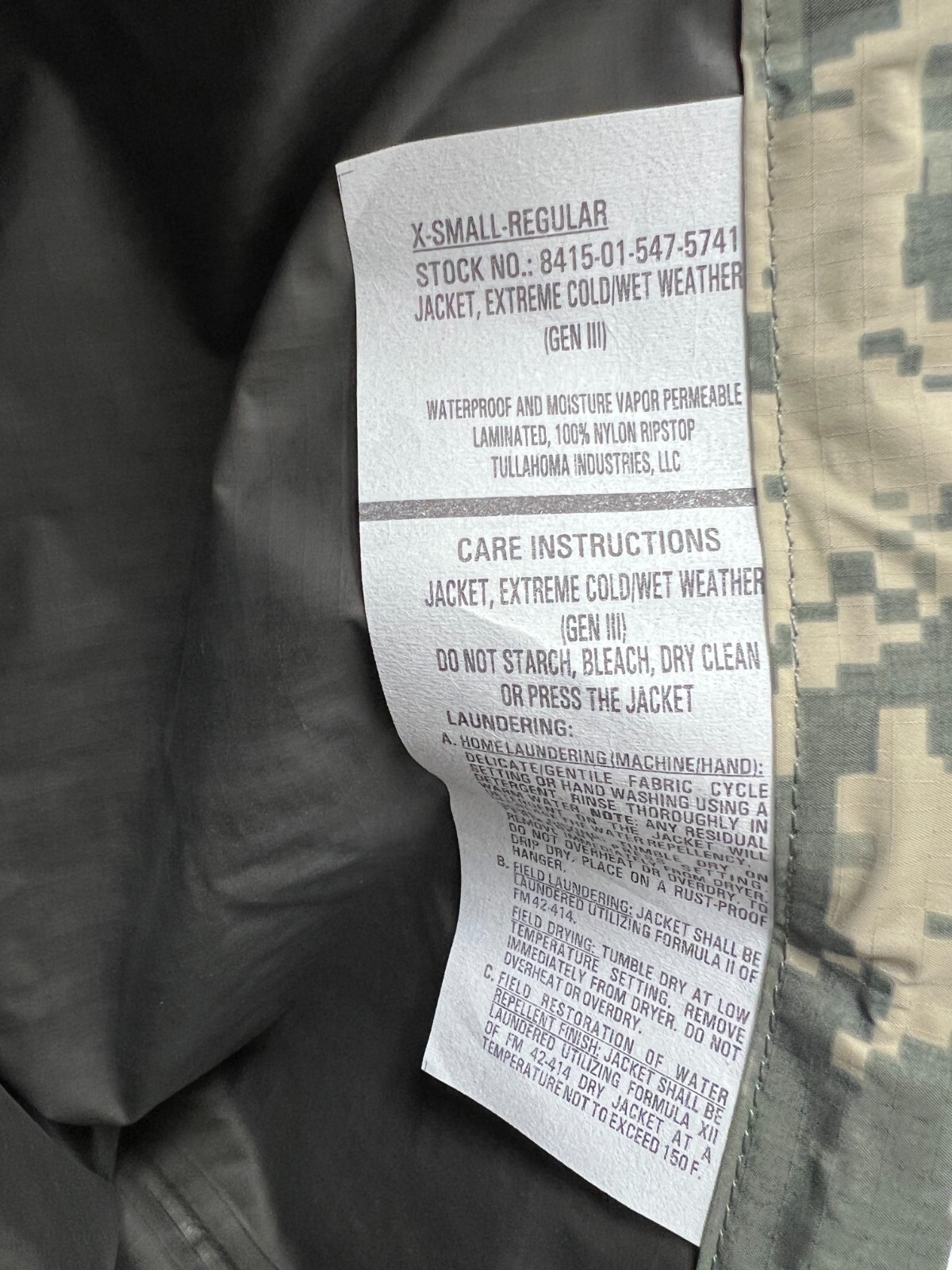 ORIGINAL US MILITARY ISSUE - ECWCS ACU DIGITAL GEN III LEVEL 6 EXTREME COLD/WET WEATHER JACKET.