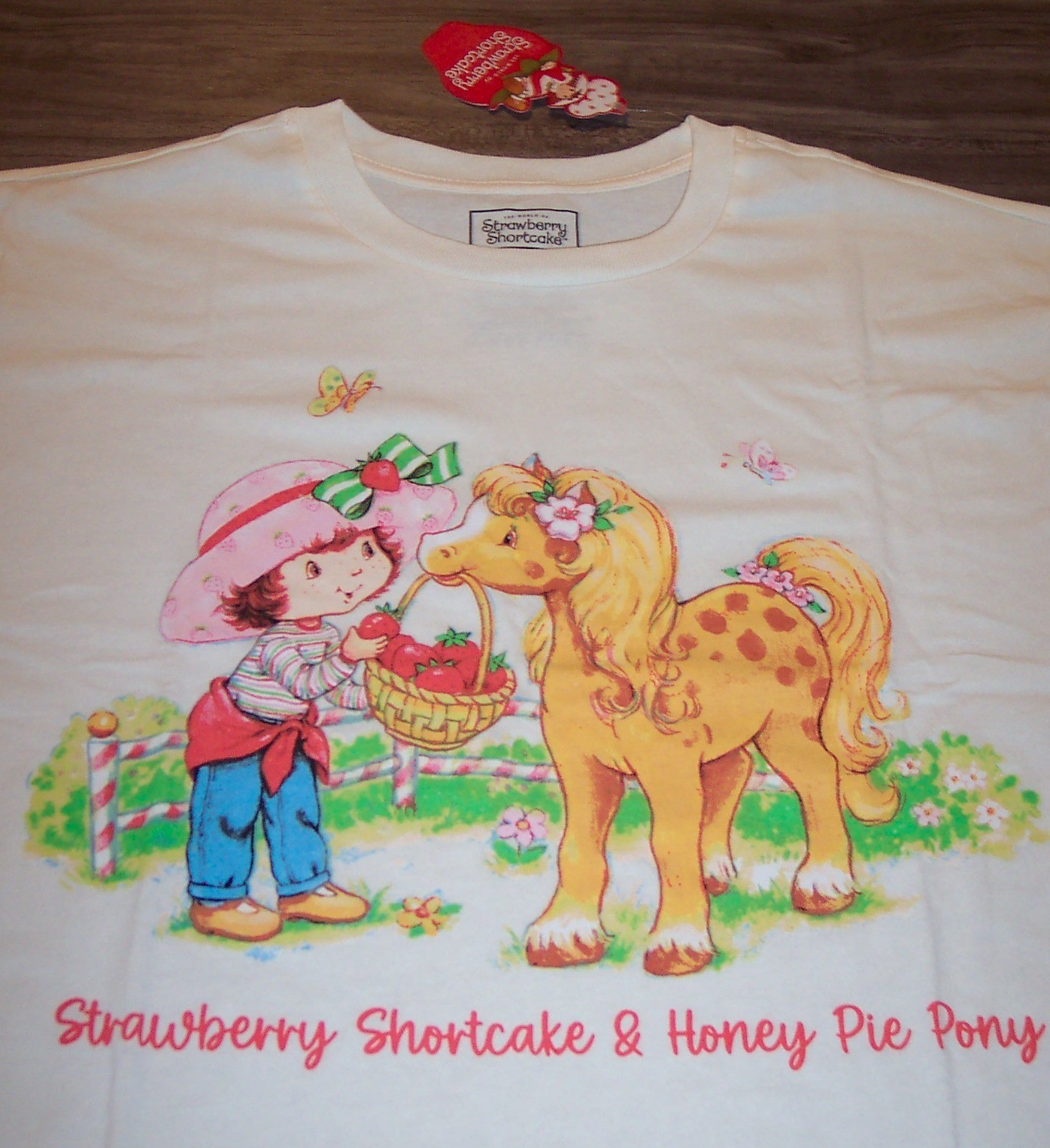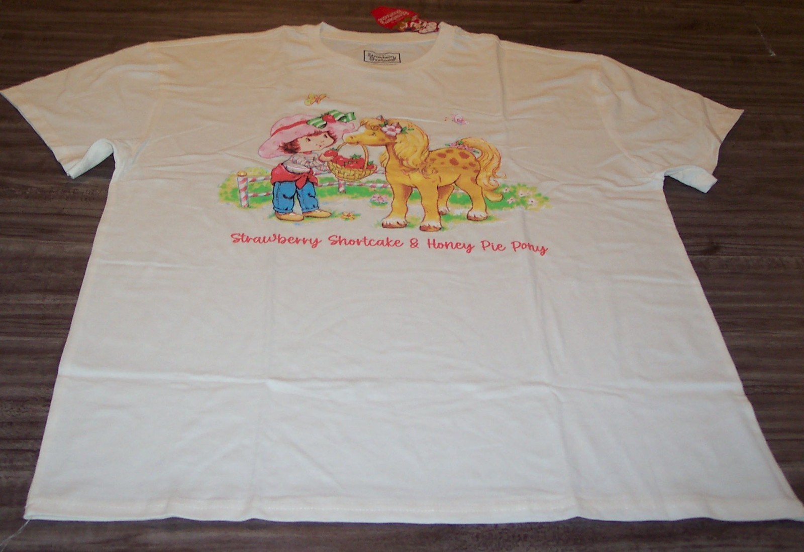 This is a Vintage Style STRAWBERRY SHORTCAKE and HONEY PIE PONY T-shirt. It is a size XL , and it is NEW with the tag. It is 24 1/2 inches from armpit to armpit and 31 inches in length. Combine auctions to save on shipping. AD