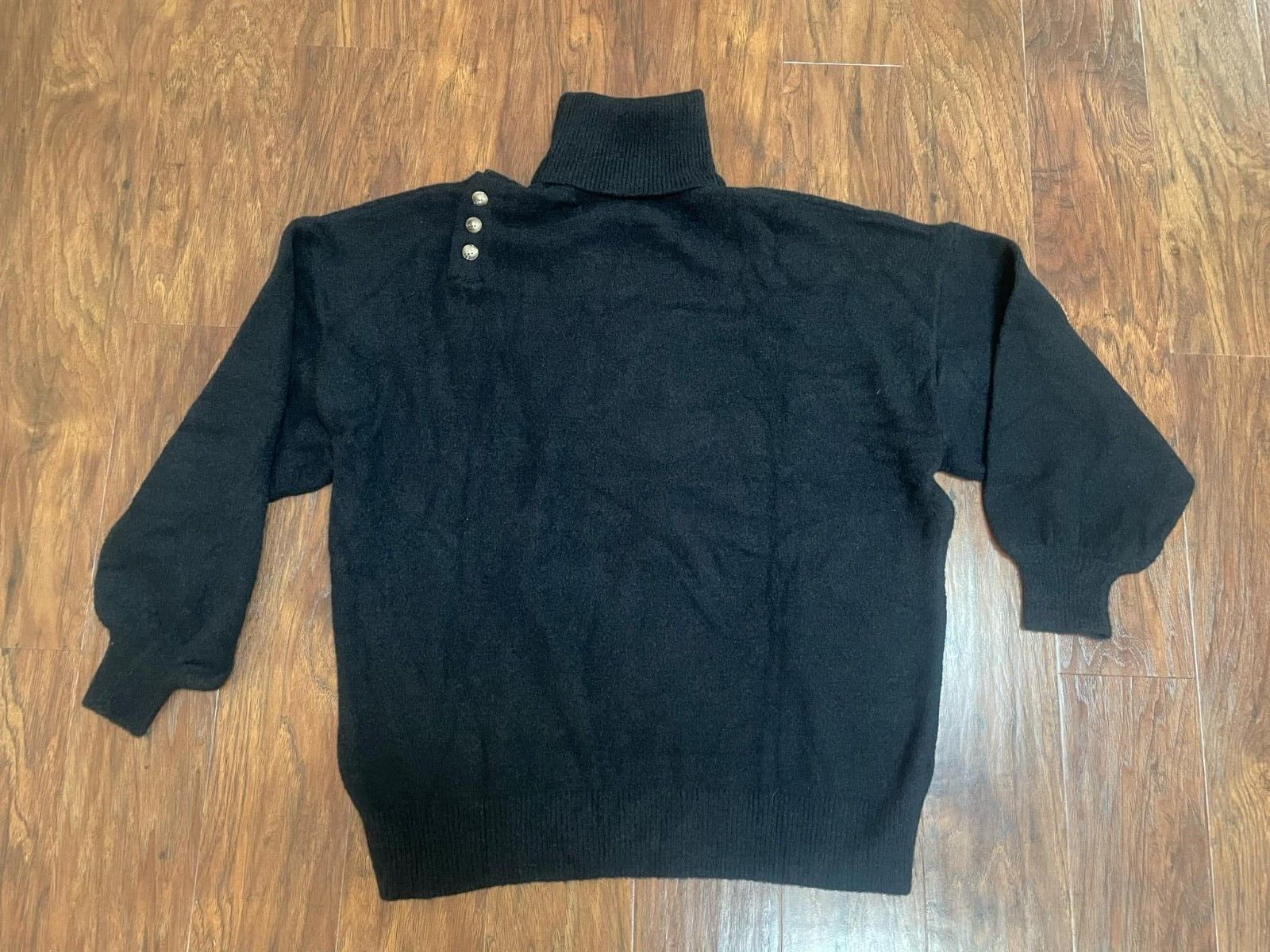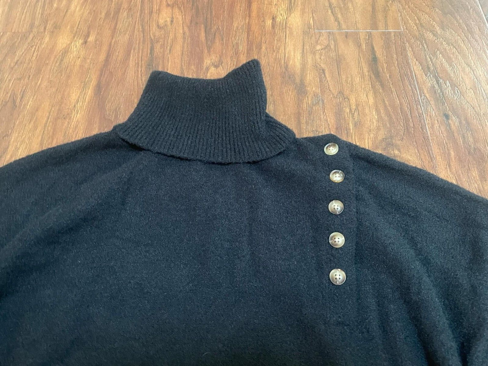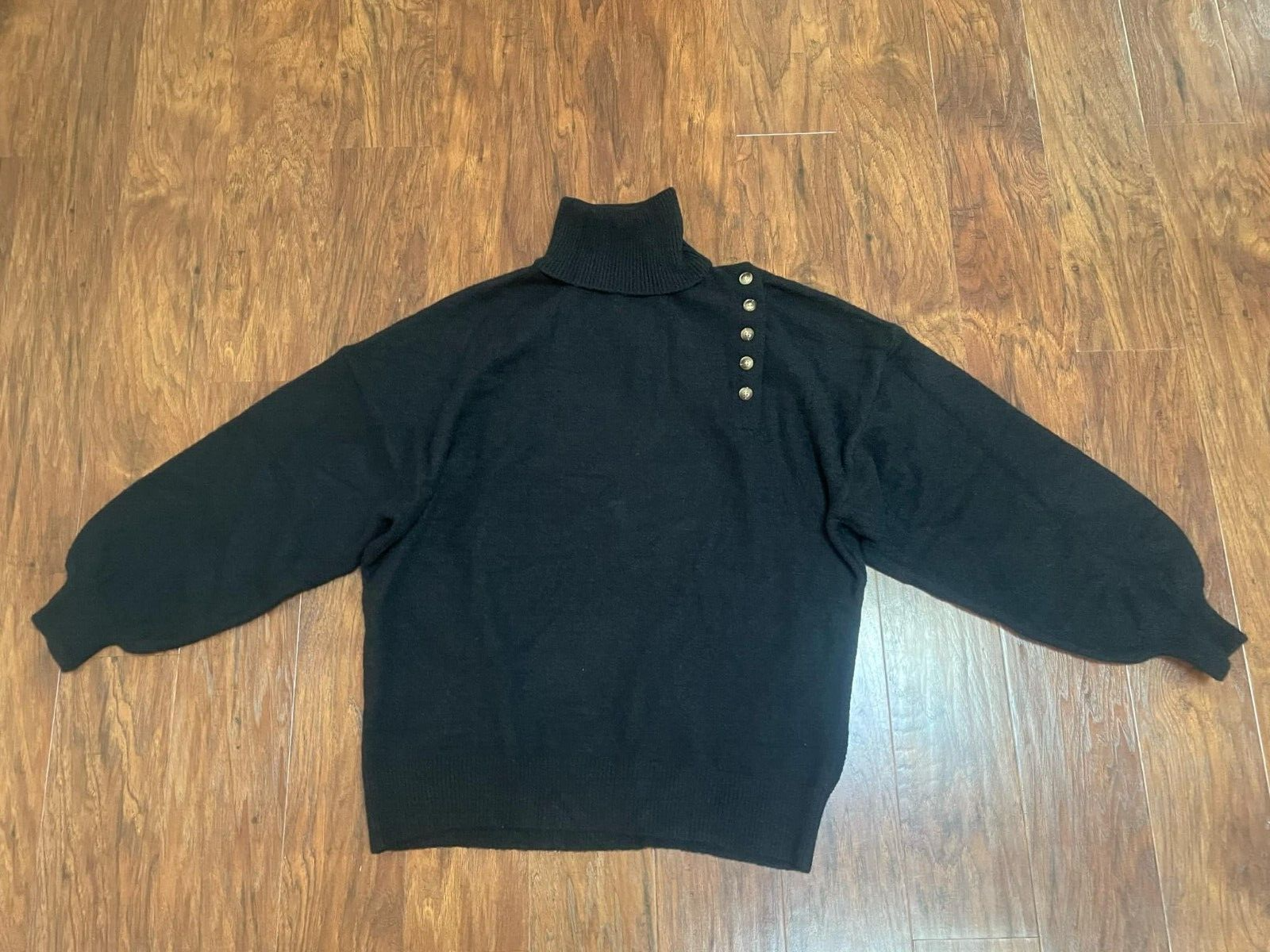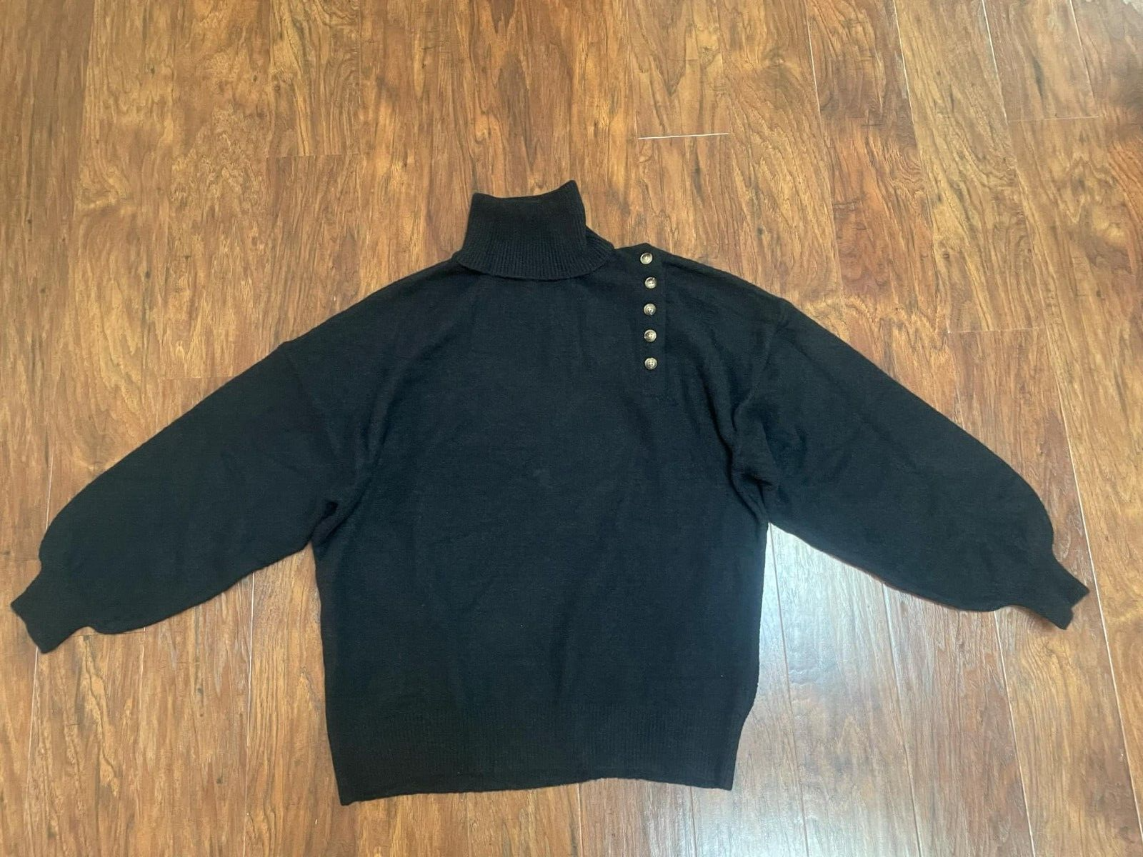 new Black High Neck Sweater Button Shoulder women's sz S Loose Fit Oversized Tee