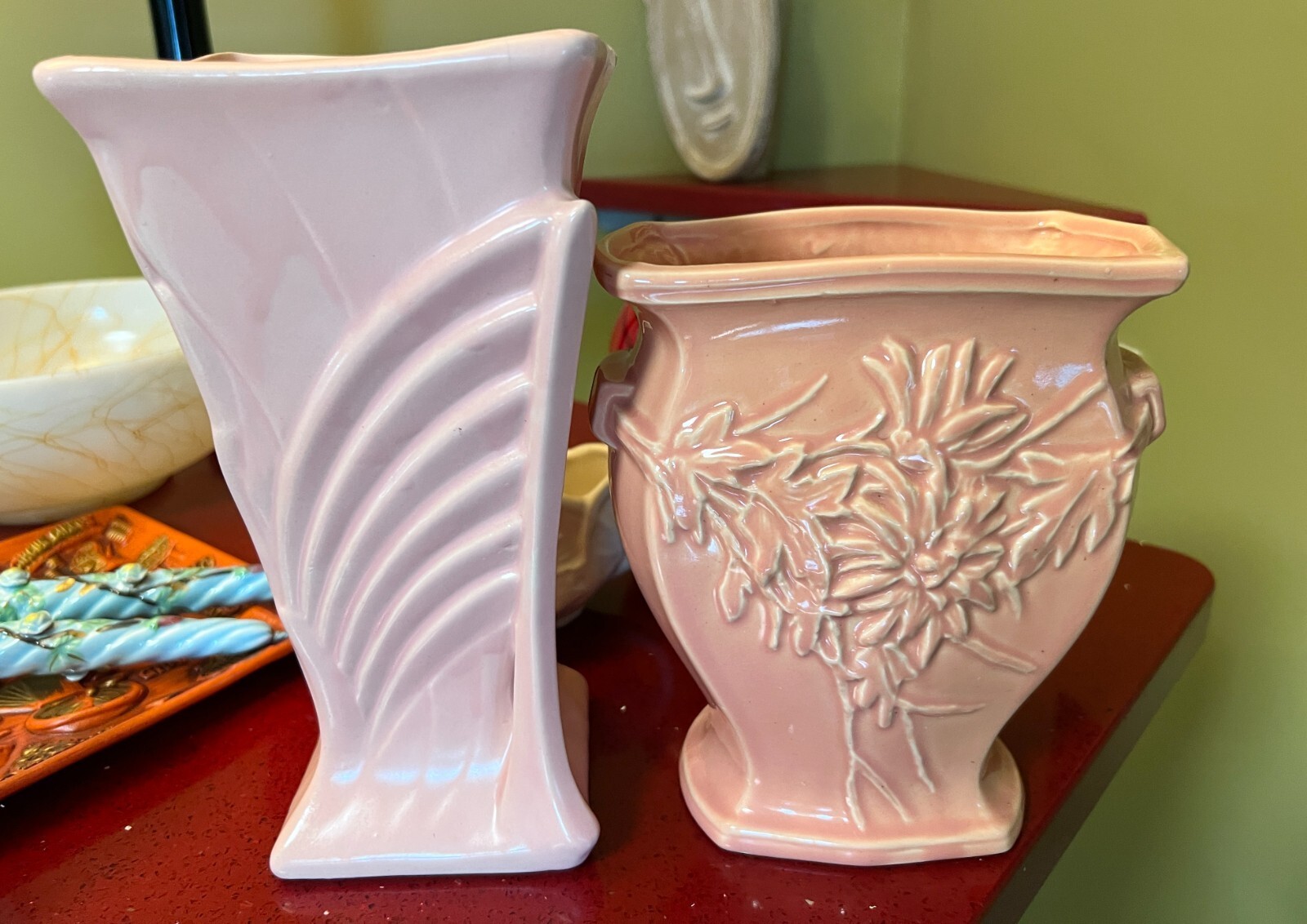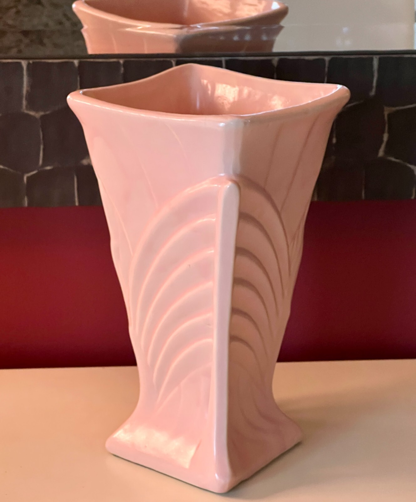 Vintage 1940's McCoy Pottery 9" Pink Art Deco Palms Vase Perfect