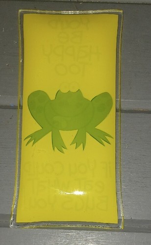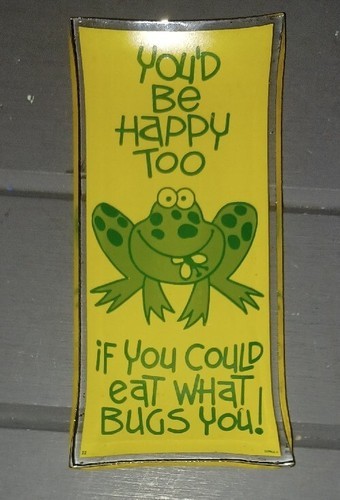 Vintage Rectangular glass Trinket Tray Frog Unique 6x3" 'You'd be Happy too if you could Eat what Bugs You!'