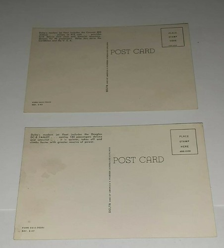 Delta Airlines Convair 880 DC-8 Fanjet Postcards Vintage 1960's Jet Airplane