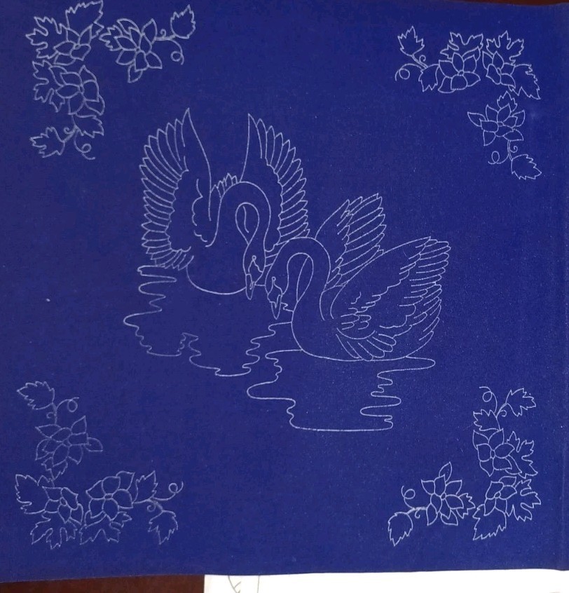 Vintage Tri-Chem Purple velveteen Pillow Cover 7030 Swans with instructions 14.5x15 inches