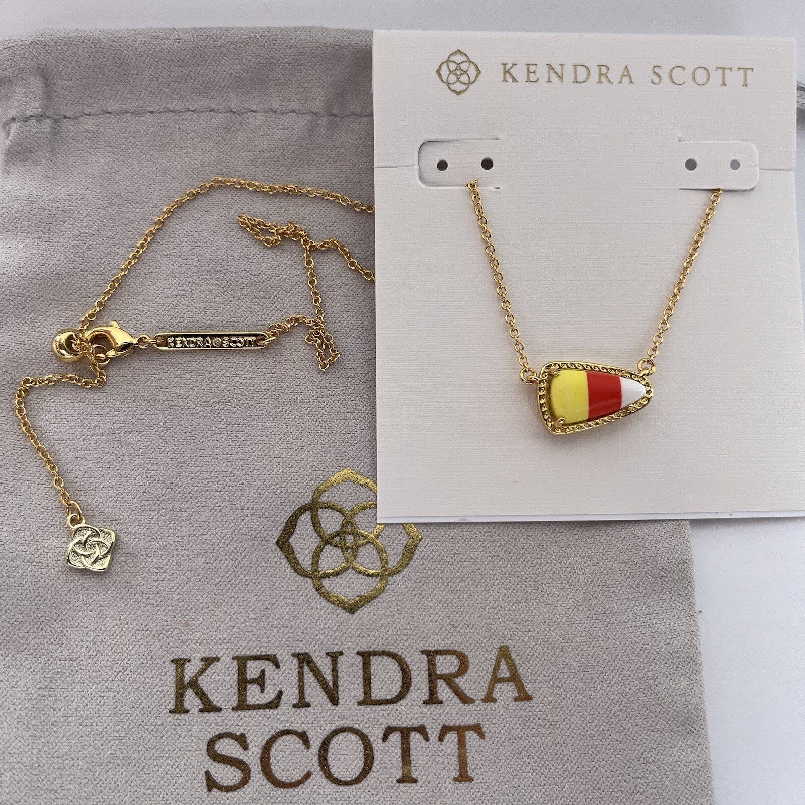 NWOT Kendra Scott Halloween Candy Corn Yellow Gold Pendant Necklace Jewelry New