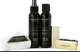 This is a brand new Watson 5 piece shoe care kit. Features a 4 fluid ounce bottle of cleaner and conditioner. A 4 fluid ounce bottle of stain repellent and rain repellent. Brush and microfiber rag as well as a gum eraser for the soles.