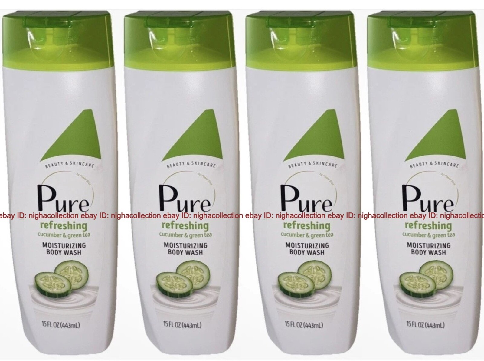 (Lot 4) Pure Refreshing Cucumber & Green Tea Moisturizing Body Wash 15 oz Ea NEW