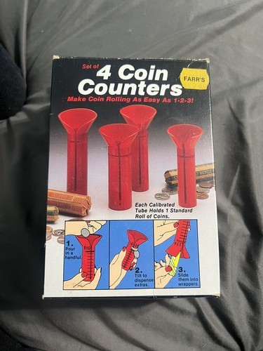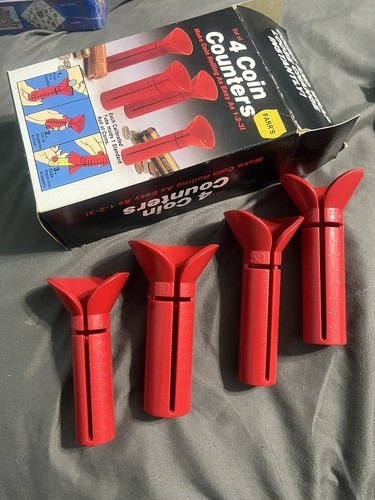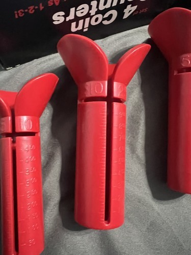Vintage 1988 Set of 4 Coin Counters Red Funnel Tubes Sun Hill Made in USA NOS