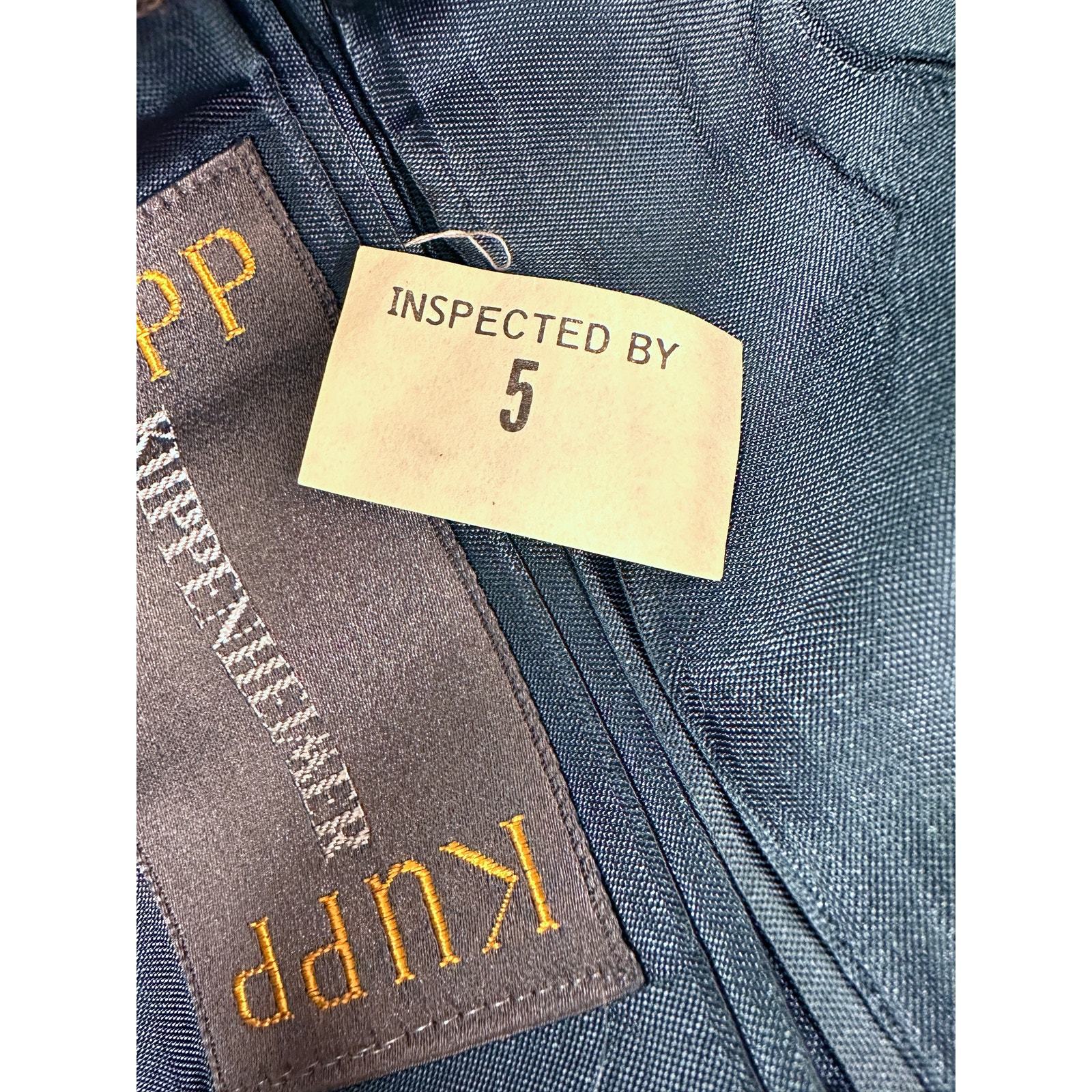 Kuppenheimer, founded in 1876 in Chicago, was one of the premier American menswear houses. This jacket features authentic Harris Tweed handwoven wool from Scotland, certified by the Orb trademark, and tailored with midcentury precision. Collectible both as fine menswear and heritage textile.