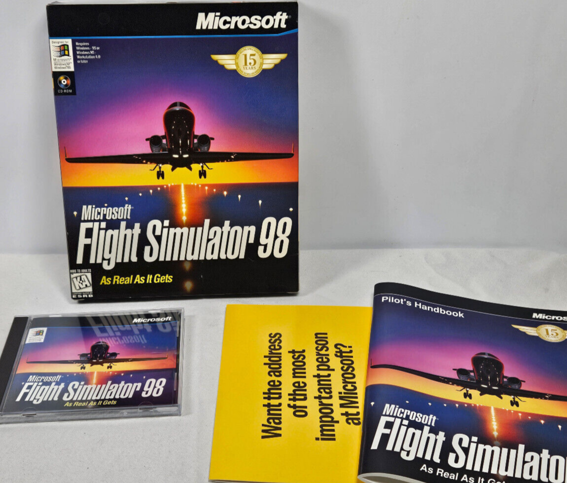 Big Box PC Microsoft Flight Simulator 98 (PC, 1997) Complete in Box with Manual