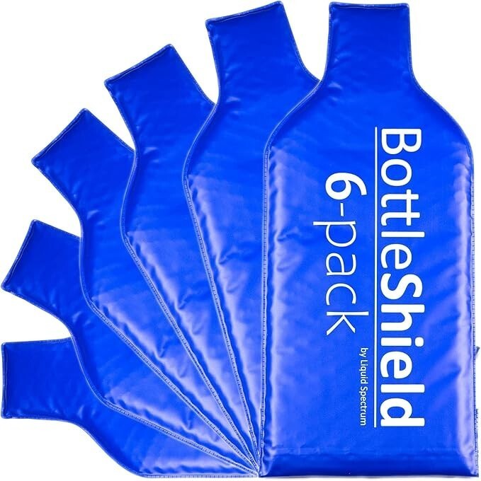 "Liquid Spectrum 6 Pack Reusable Wine Protector Travel Bag by Bottle Shield - Bubble Cushioning Wrap Suit - Unbreakable Bottle Sleeve, Leak Proof