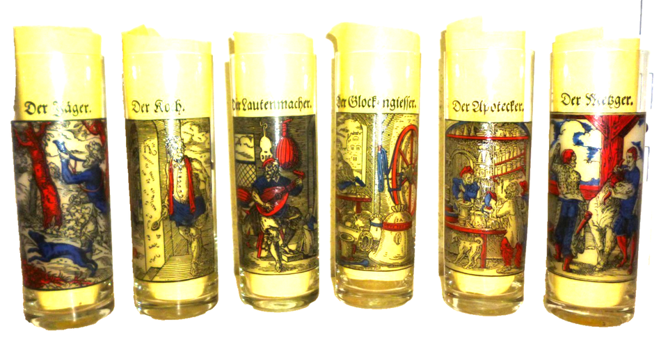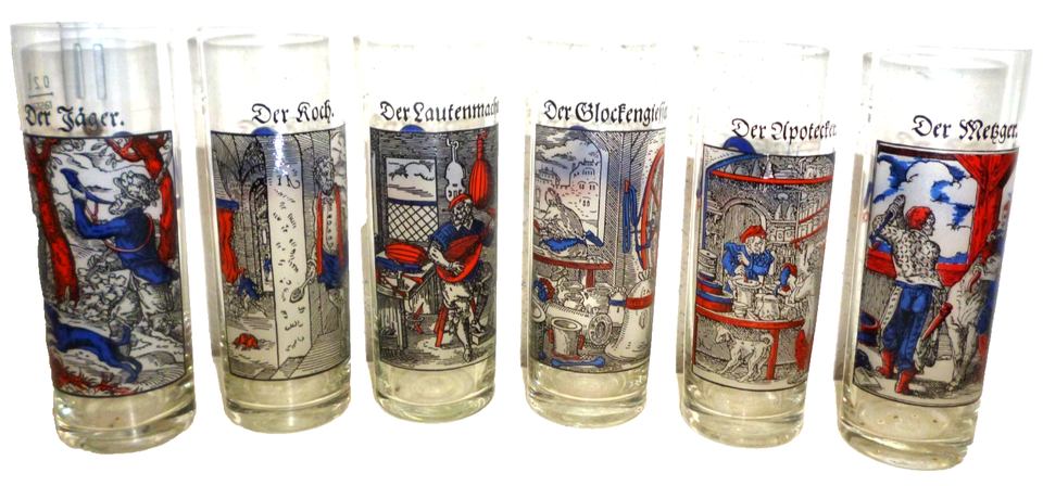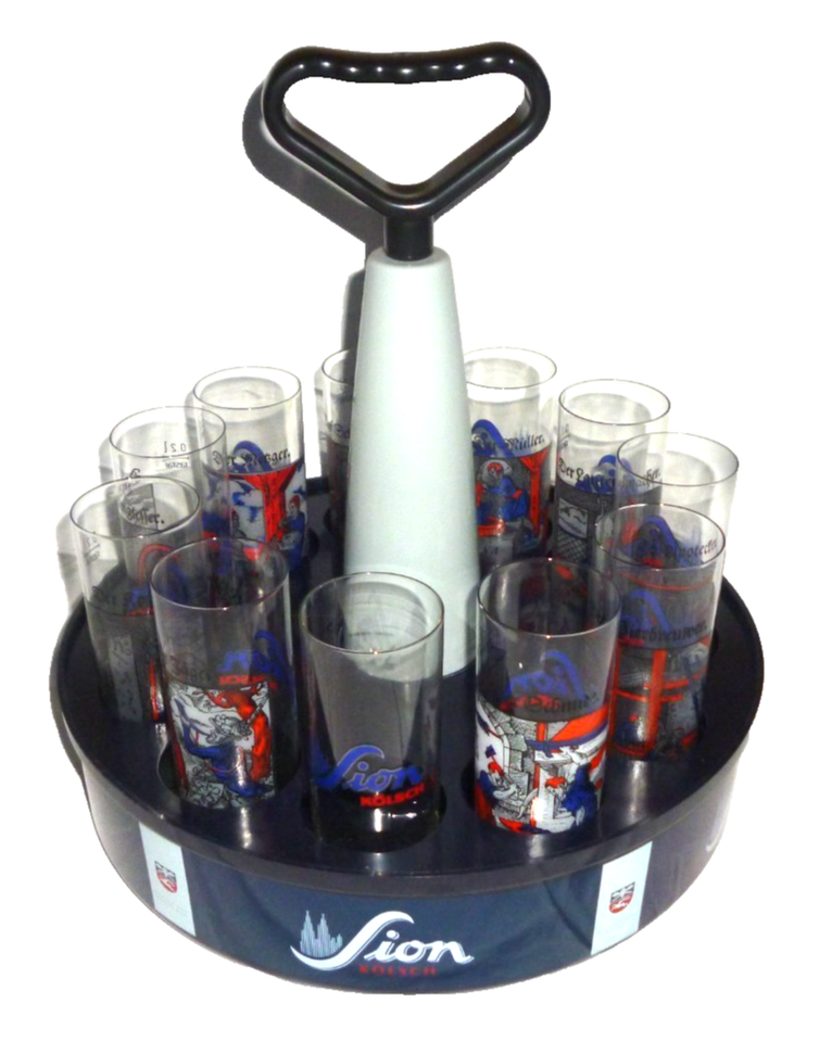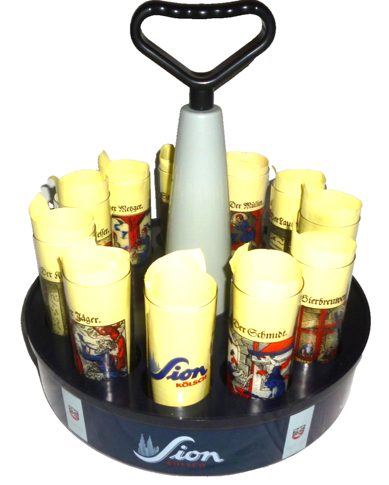 For Sale is a stunning Set-of-11, double-sided, rare, limited-edition Medieval Master Professions SION Kolsch beerglasses vintage SION Kolsch Serving Tray Kranz from the SION brewery in Cologne, Germany, commemorating the prevailing Master Professions in the City of Cologne in the Middle Ages Period.