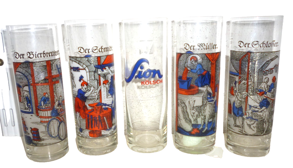 11 Sion Kolsch Cologne Master Professions 2 German Beer Glasses & Tray