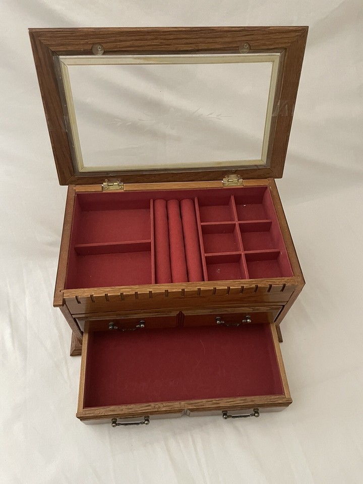 Jewelry Box Oak Wood with Etched Glass Top- and 46 similar items
