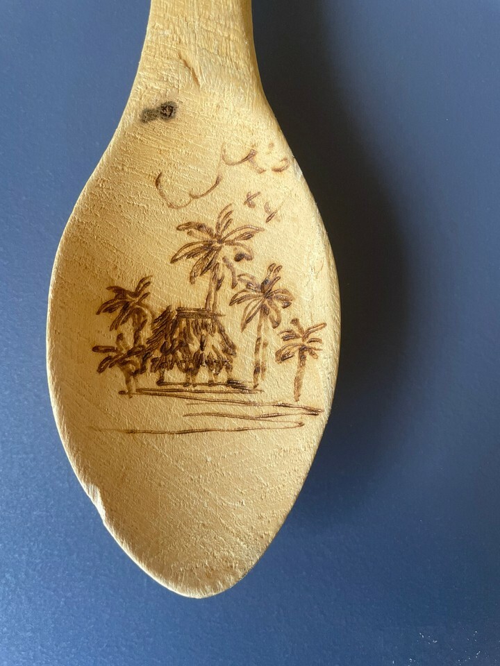 Vintage Honduras Souvenir Handmade Folk Art - Wood Spoon Kitchen Art - e813