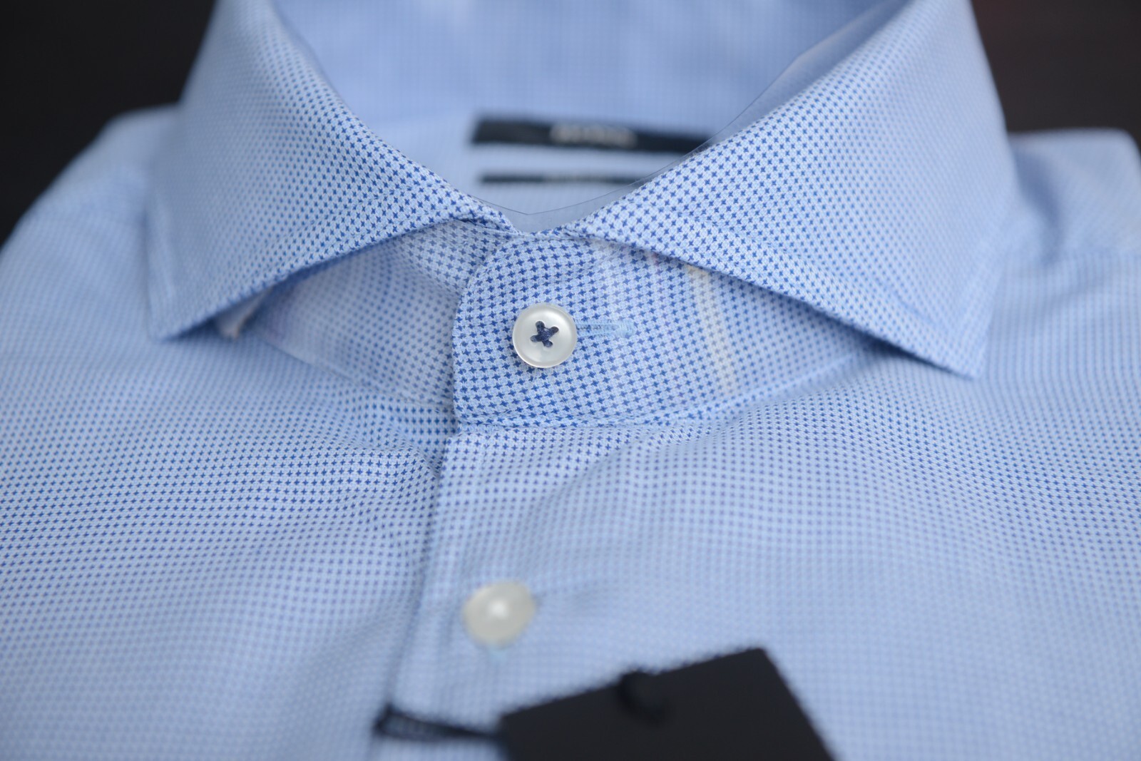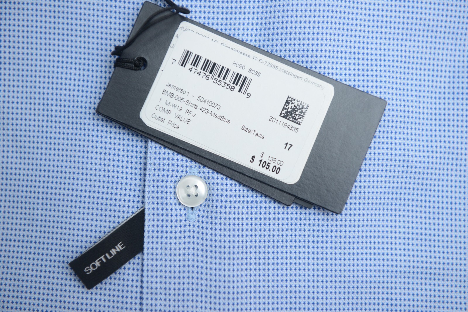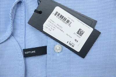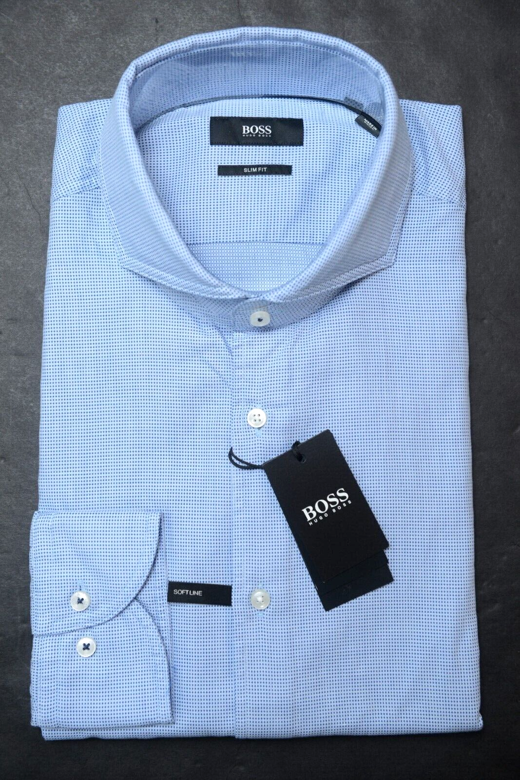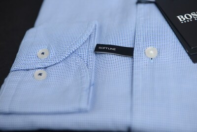 NWT Hugo Boss Mens Jemerson Slim Fit Softline Med Blue Spoted Cotton Dress Shirt