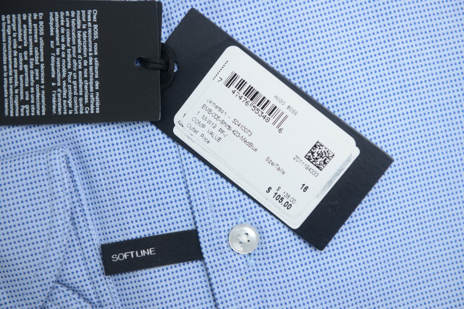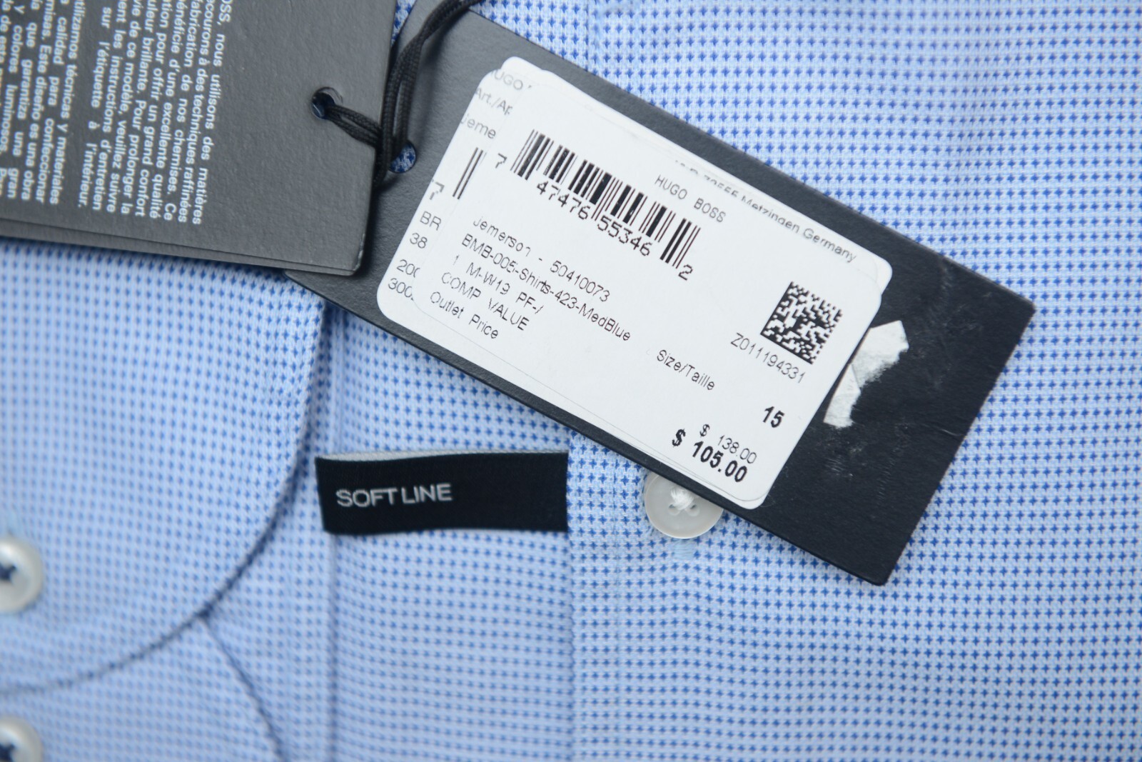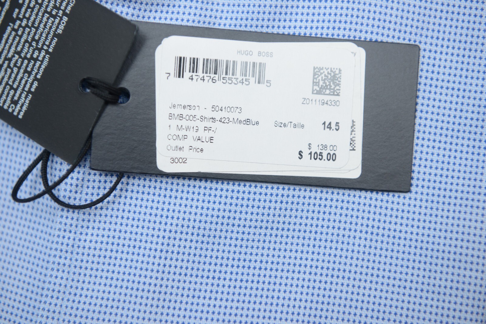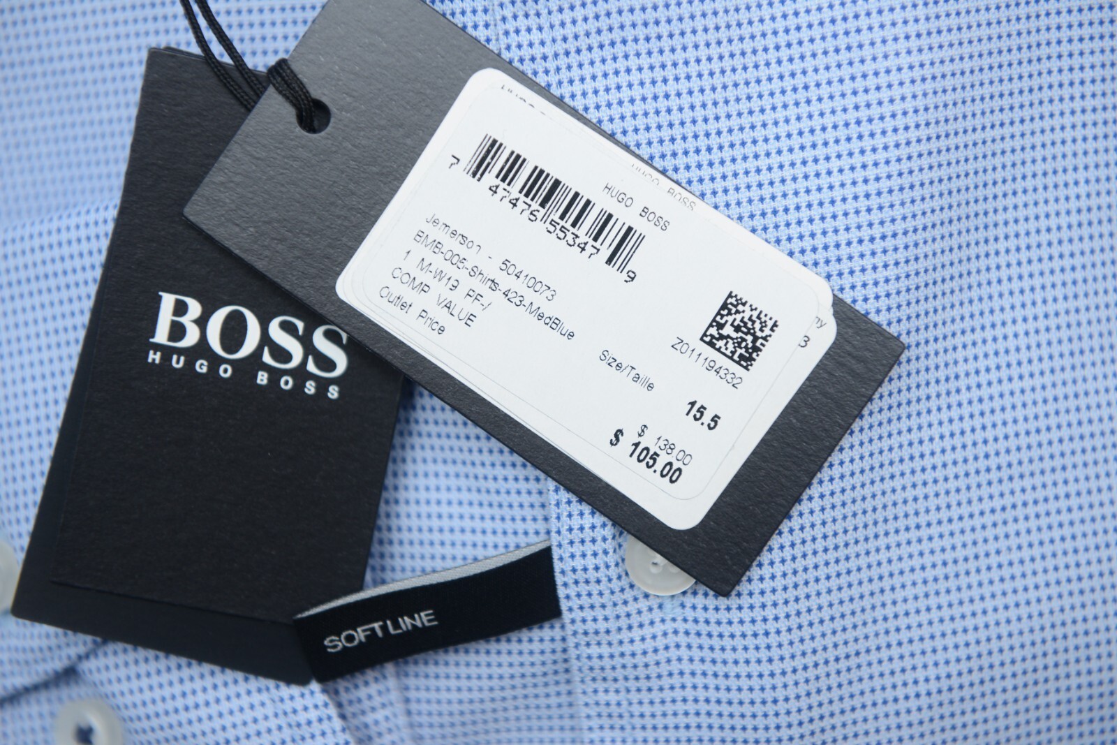 NWT Hugo Boss Mens Jemerson Slim Fit Softline Med Blue Spoted Cotton Dress Shirt