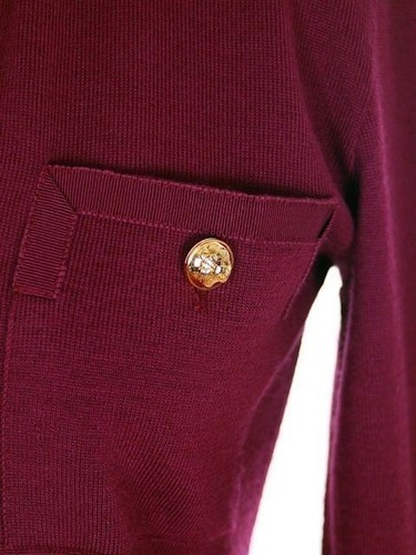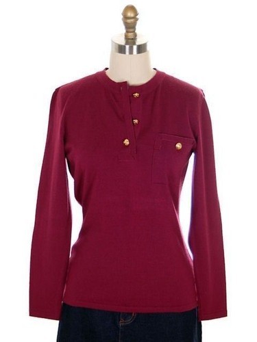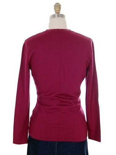 Vintage 1980s Salvatore Ferragamo Wine Wool Sweater Gold Button Grosgrain Trim S