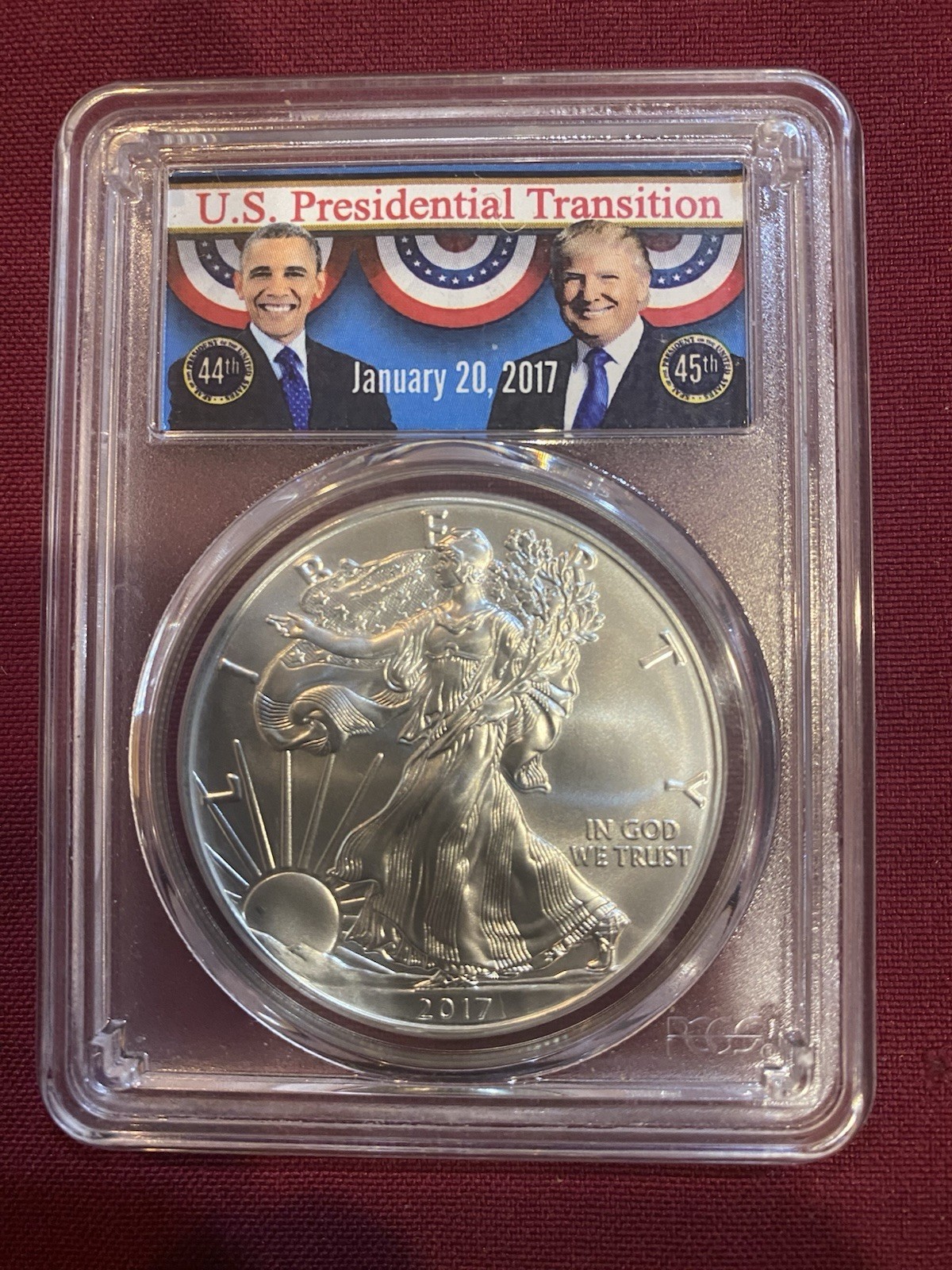 2017 U.S. Presidential Transition Silver Eagle 1oz. PCGS MS69 Obama to Trump