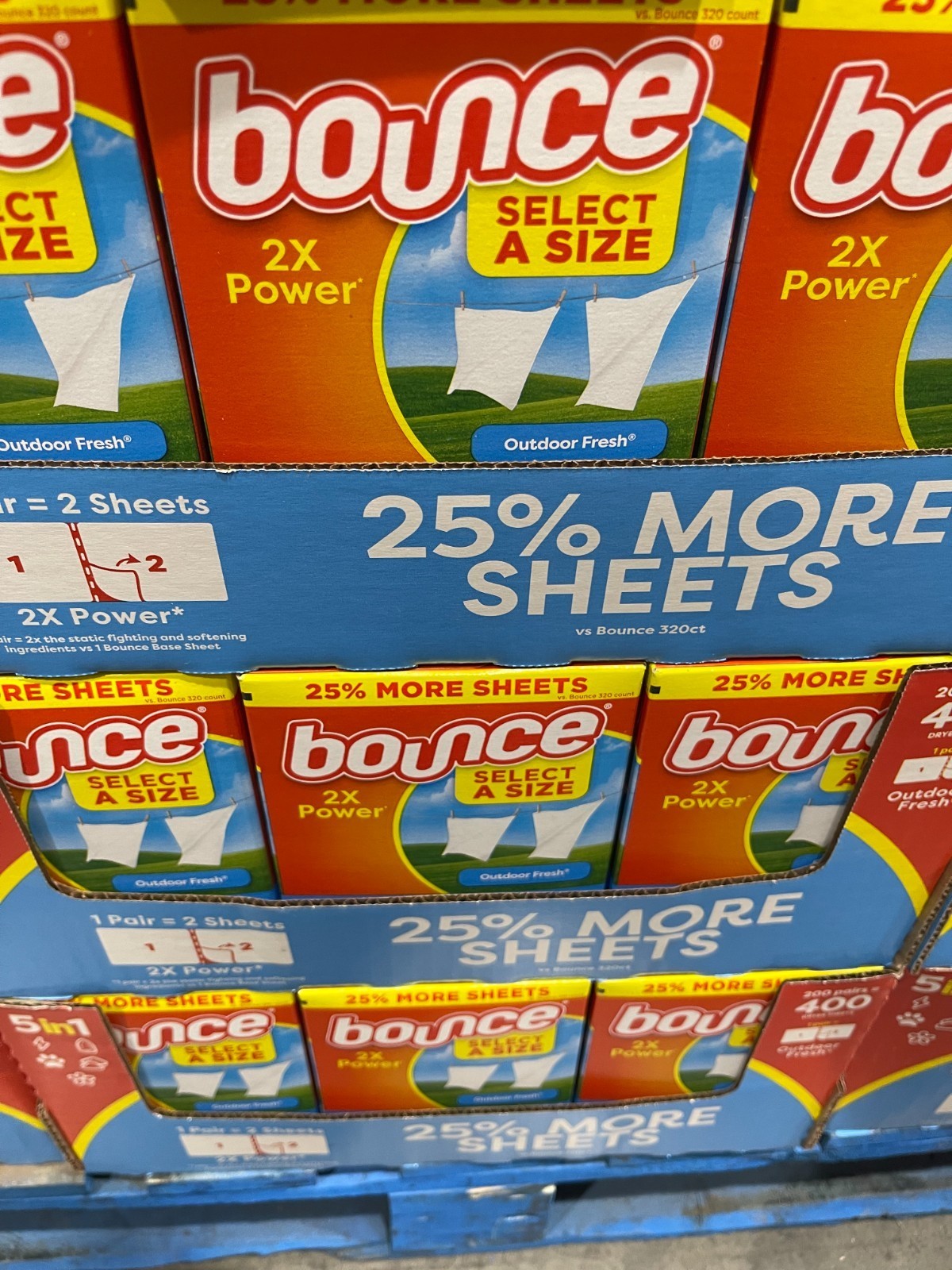 Each perforated pair of Bounce Select a Size Dryer Sheets has 2X the power vs. 1 Bounce Base sheet