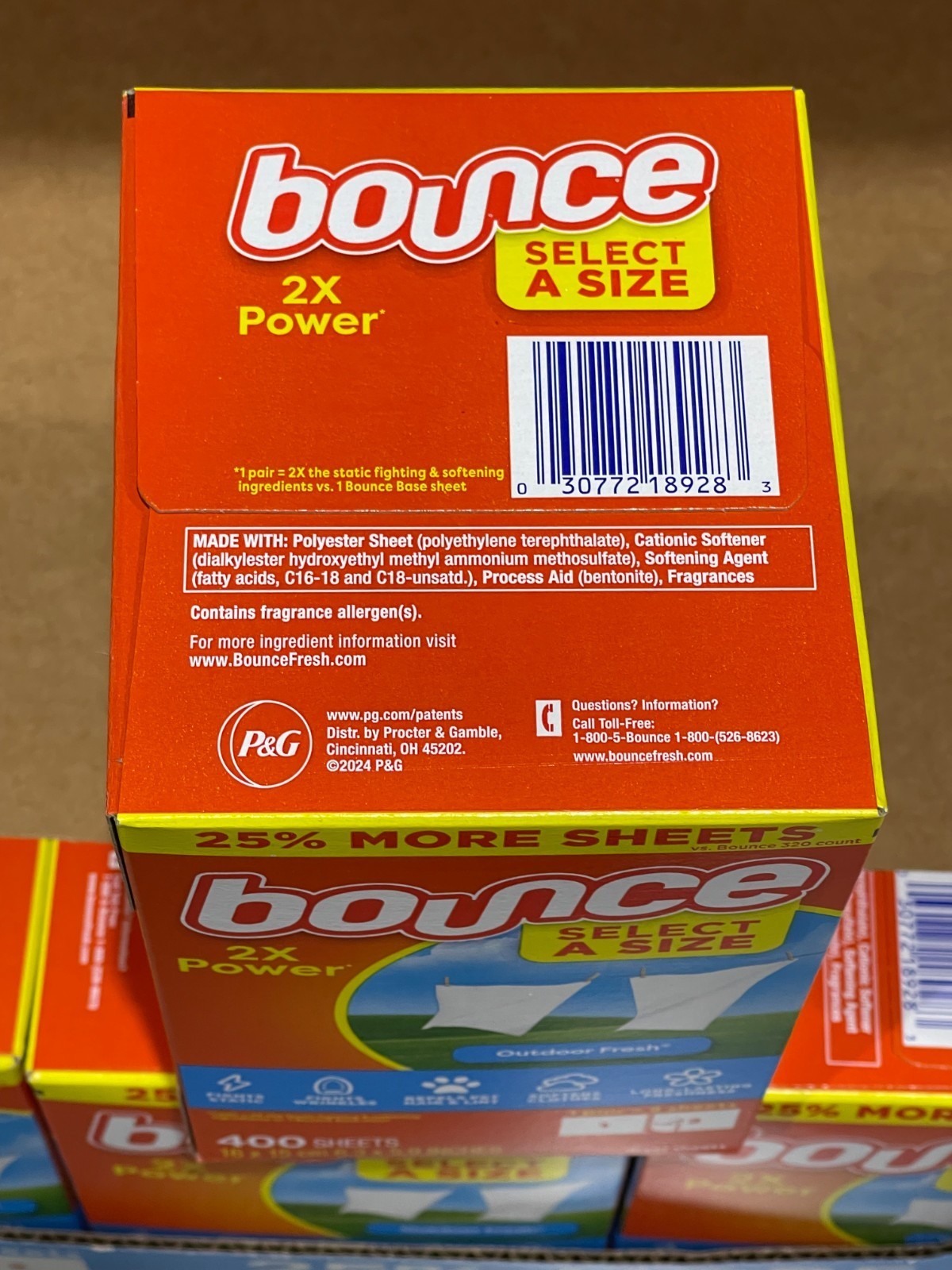 Box Contains 400 dryer sheets - now with 25% more sheets vs Bounce 320 ct