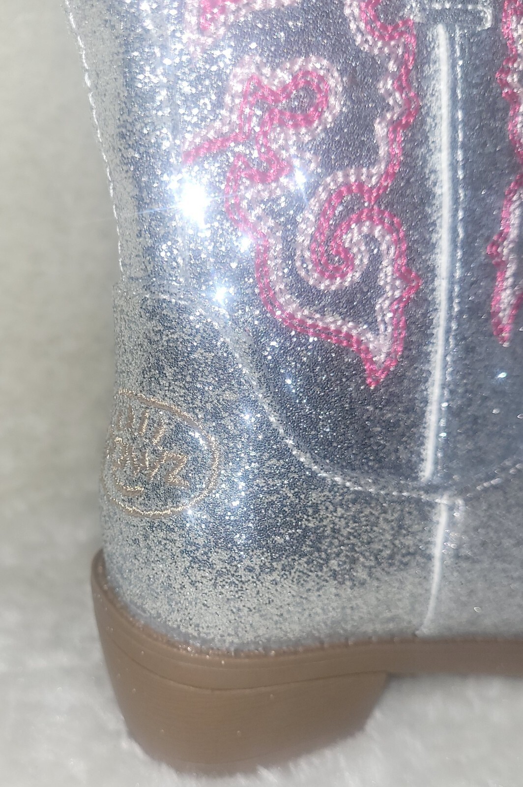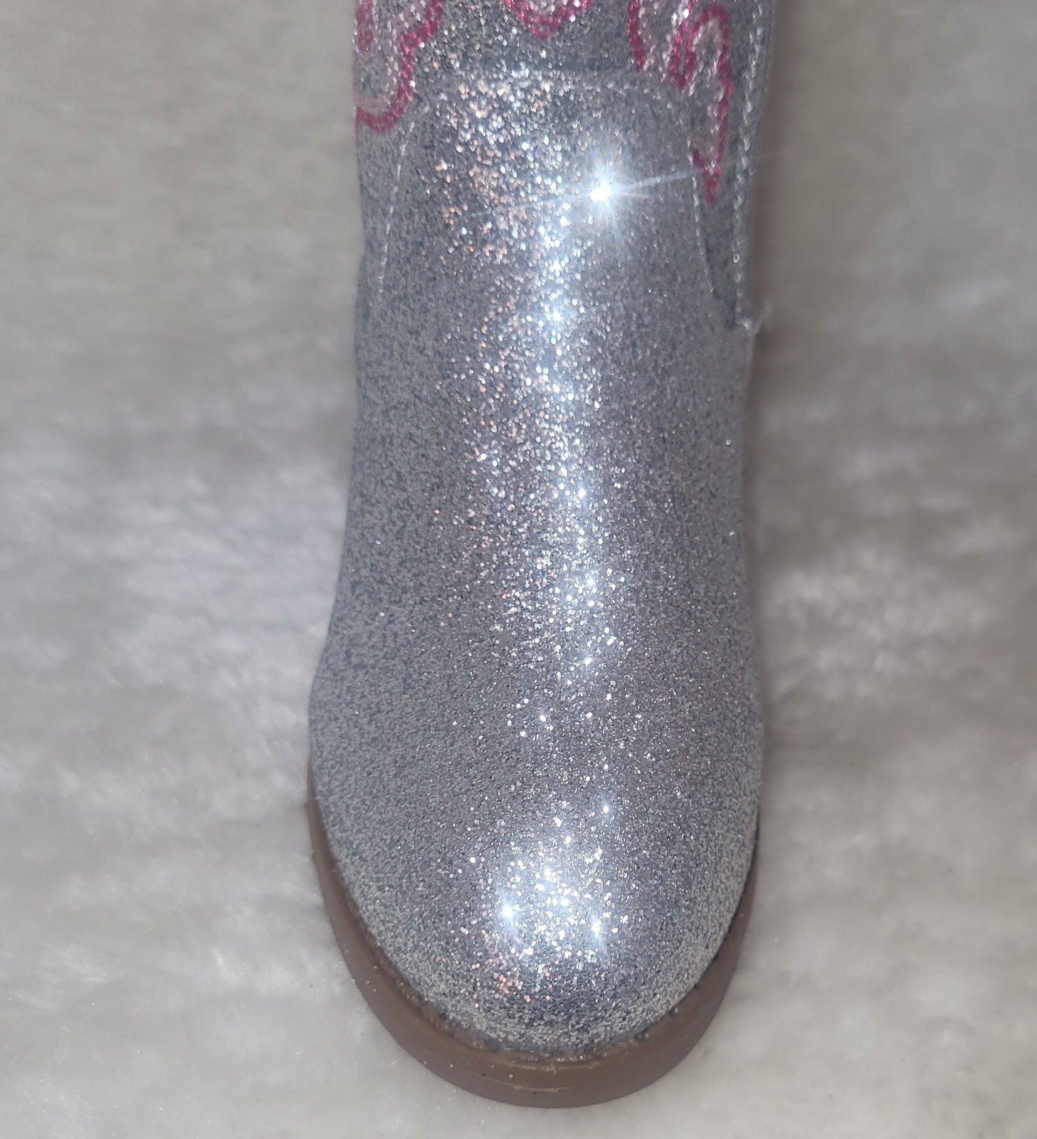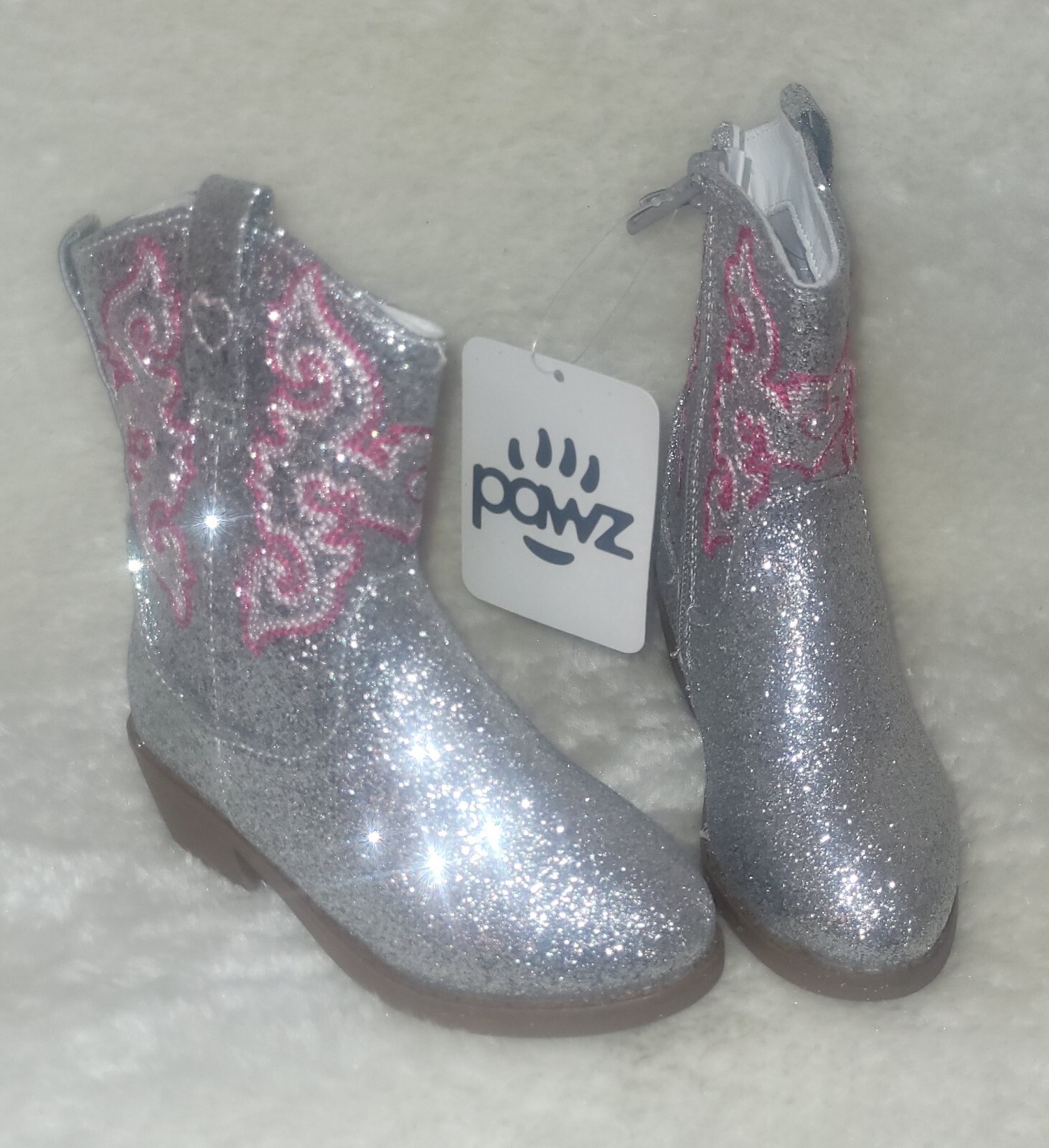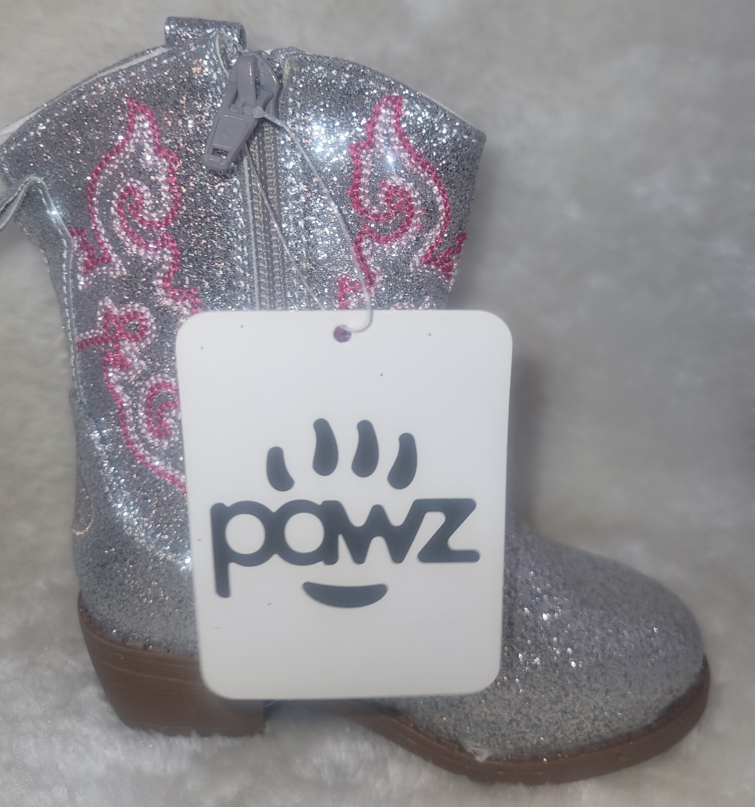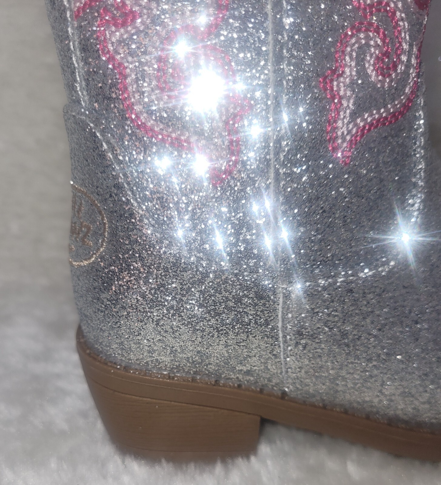 Cowboy Boots LITTLE KIDS Size US 9 Silver Pink detail Sparkle Glitter By Pawz