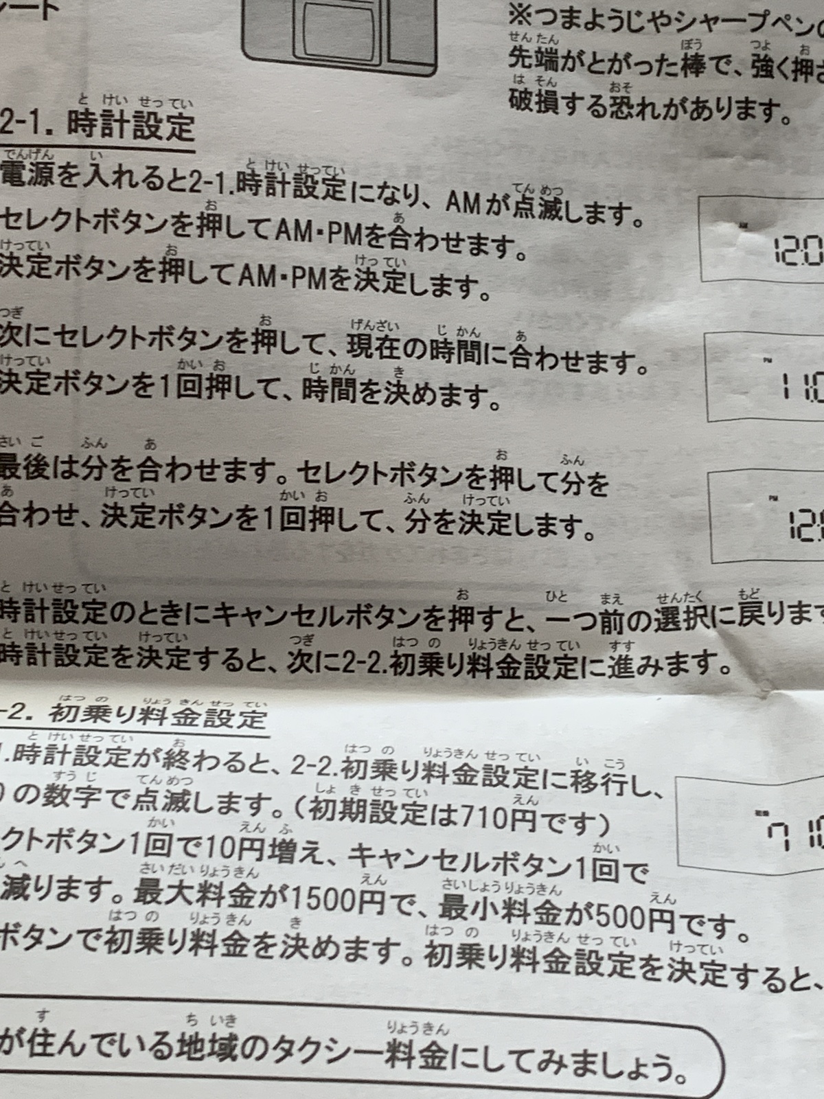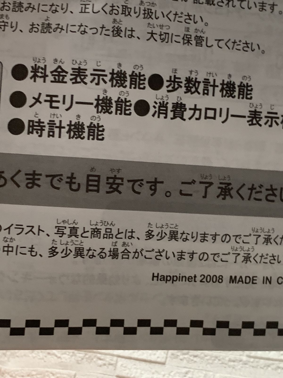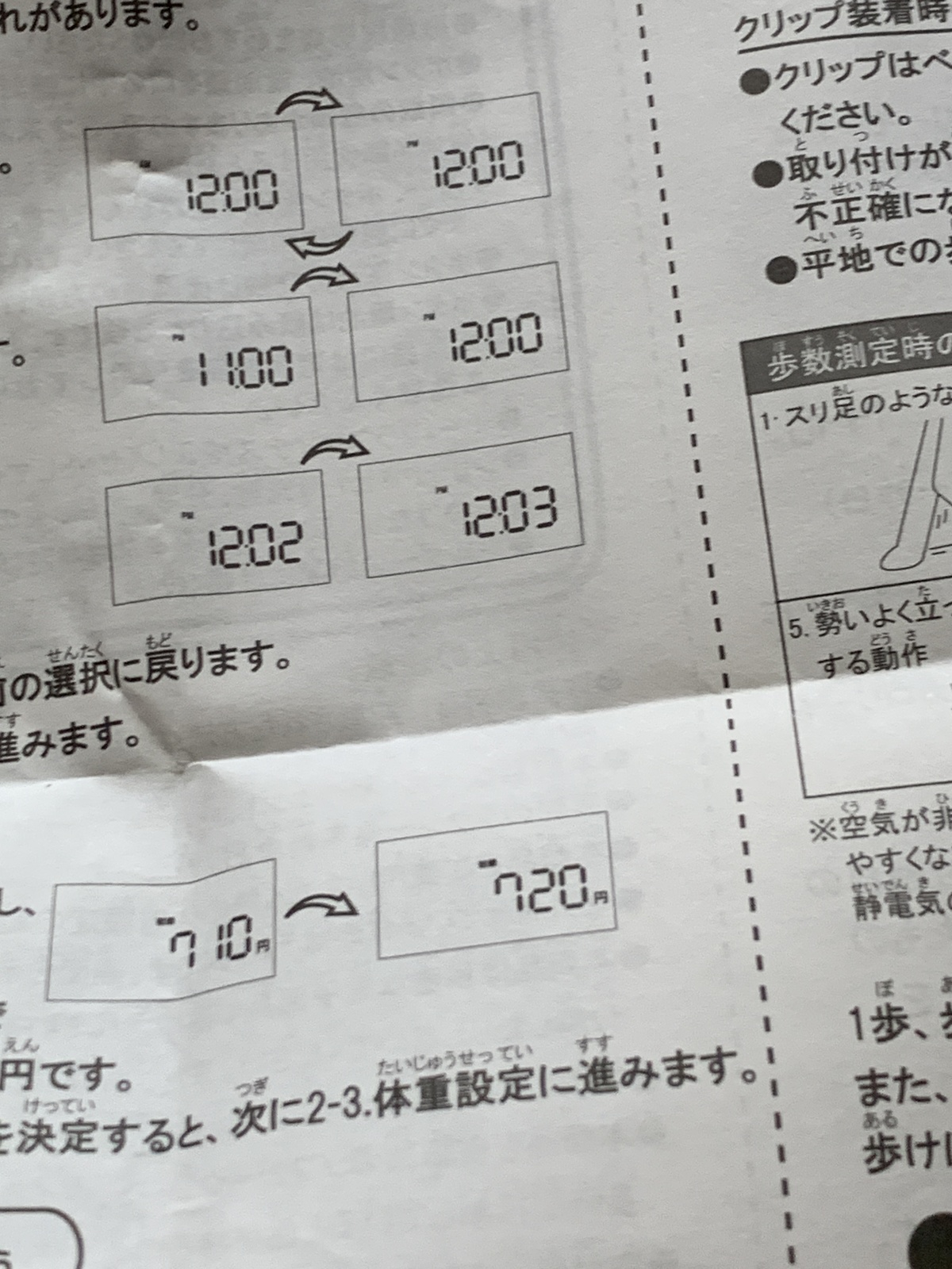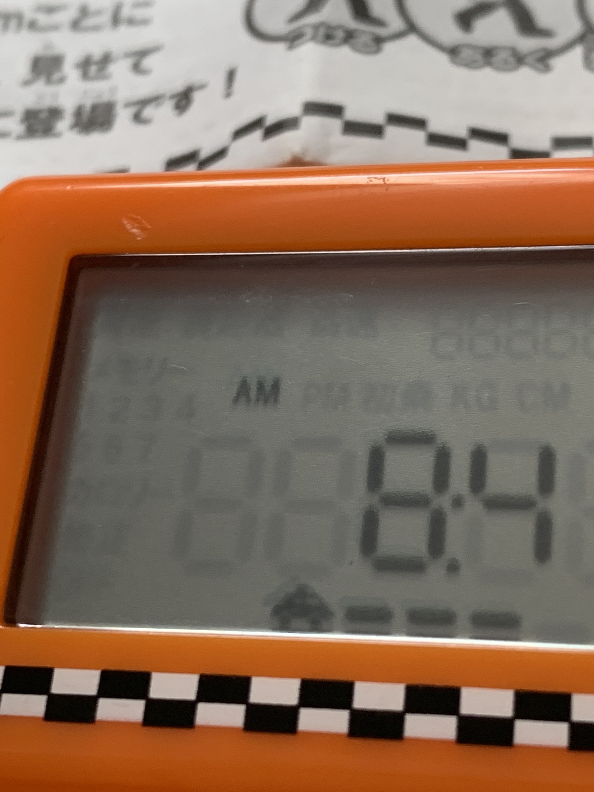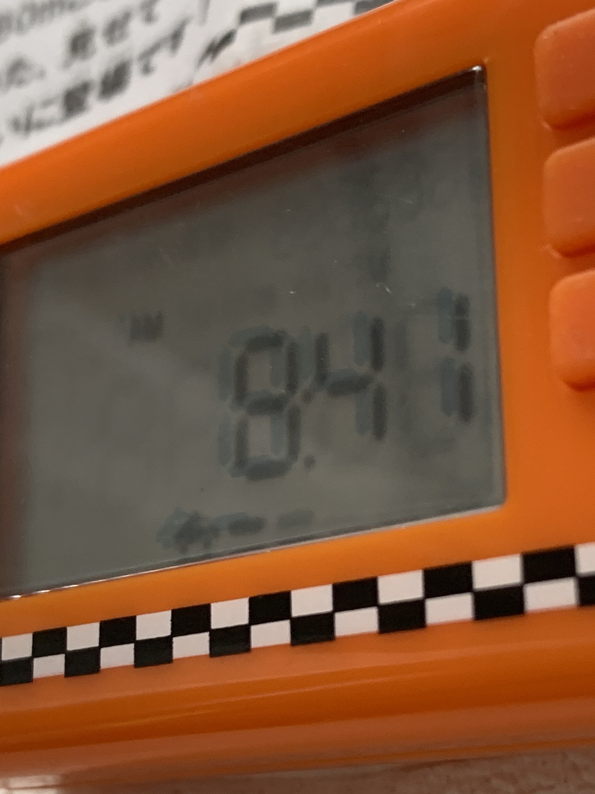 Retro digital pedometer, orange. This is an old-fashioned lip-style pedometer. Since it's quite old, we're not sure if it still works. It comes with a Japanese instruction manual. It seems to count analog steps as you attach it to your belt.
