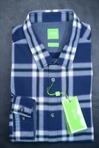 NWT Hugo Boss Herren C-Bopaz regulare fit navyblaue Schecks Cotton Sport Casual Shirt