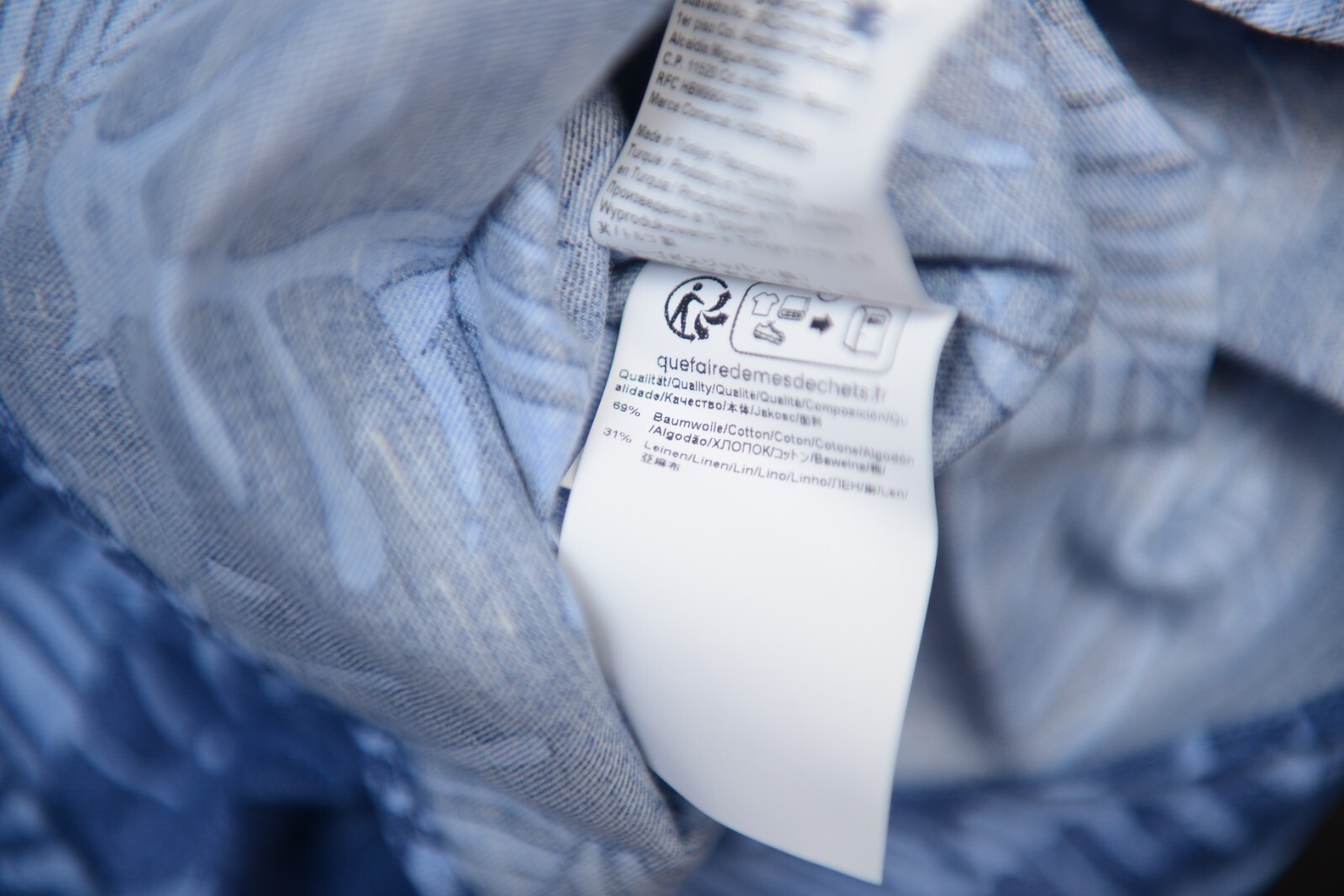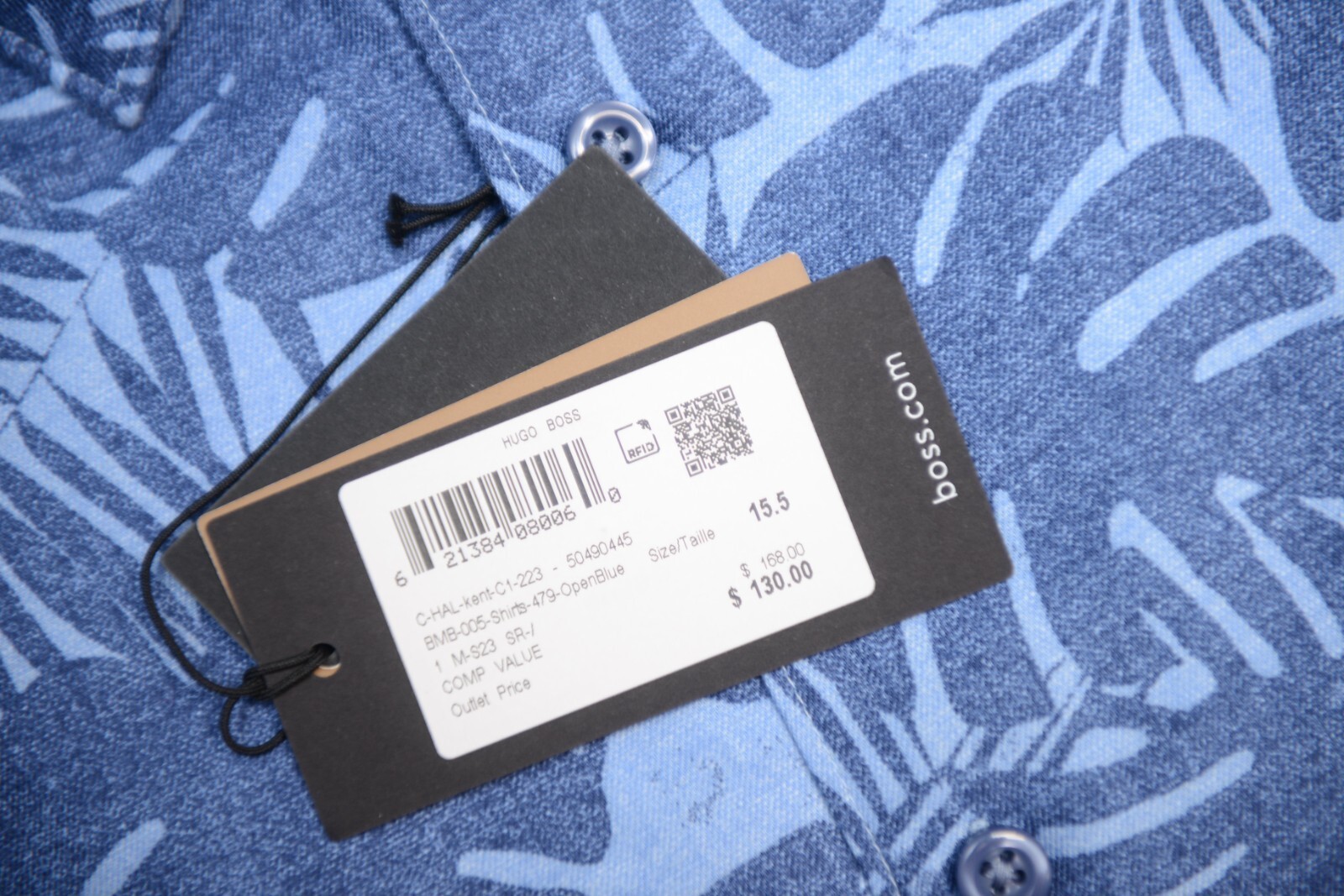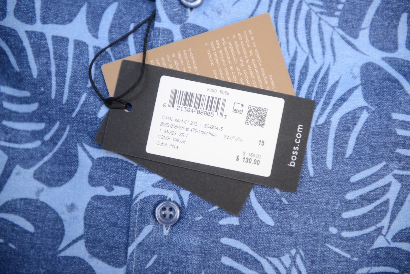 NWT Hugo Boss Herren Hal Kent Casual Fit Blue Blattbaus Baumwolle/Leinenhemd Hemd