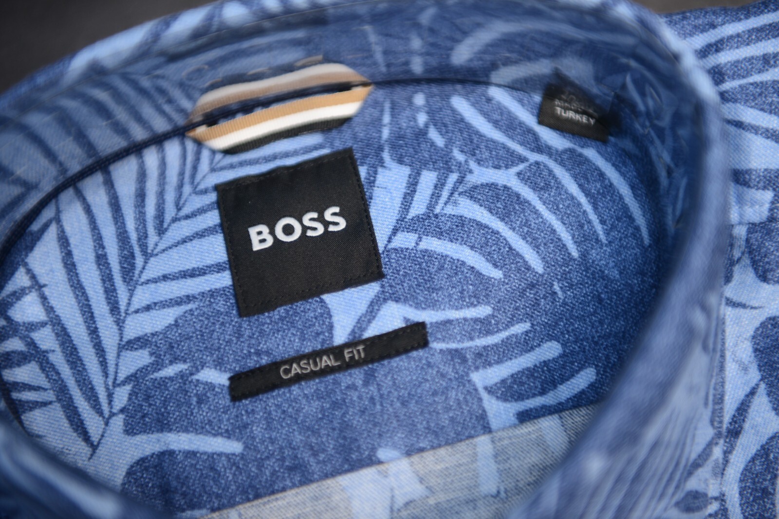 HUGO BOSS Herren Hal Kent Freizeit Passform Blatt Druck Baumwolle / Leinen Hemd
