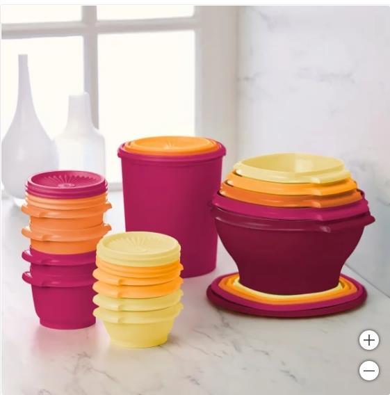 Keep your kitchen organized with the Tupperware Heritage Collection - a 32-piece set of nesting bowls and canisters. Each container features Tupperware's signature sunburst airtight lids with one-touch closure, and durable BPA-free material design to keep your food fresh and stylishly stored.