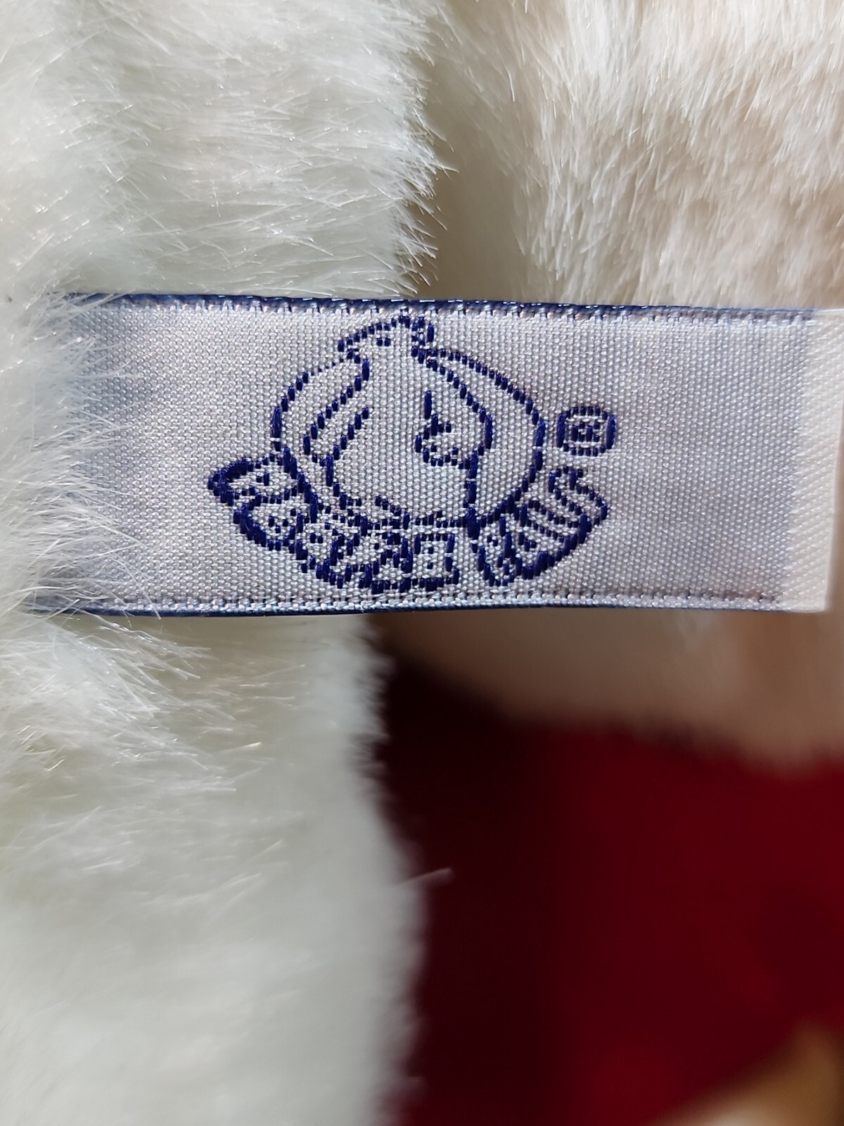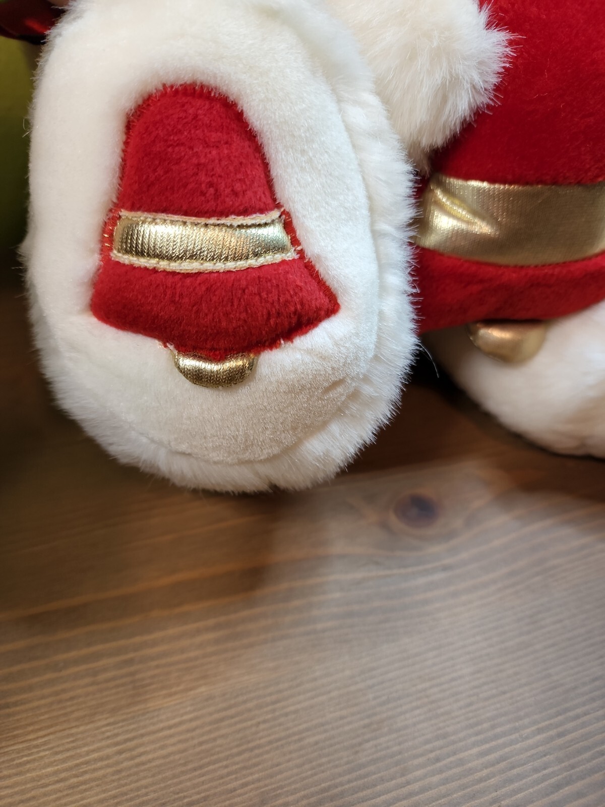 A A White Christmas Teddy Bear Red Bells Santa Plush Stuffed Animal Toy.