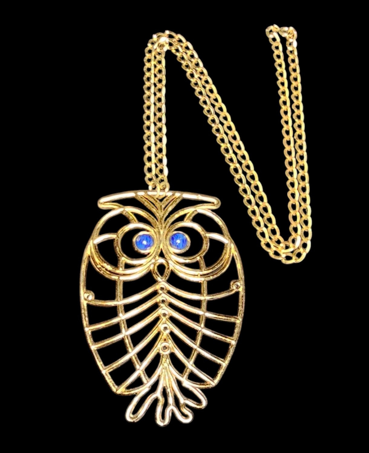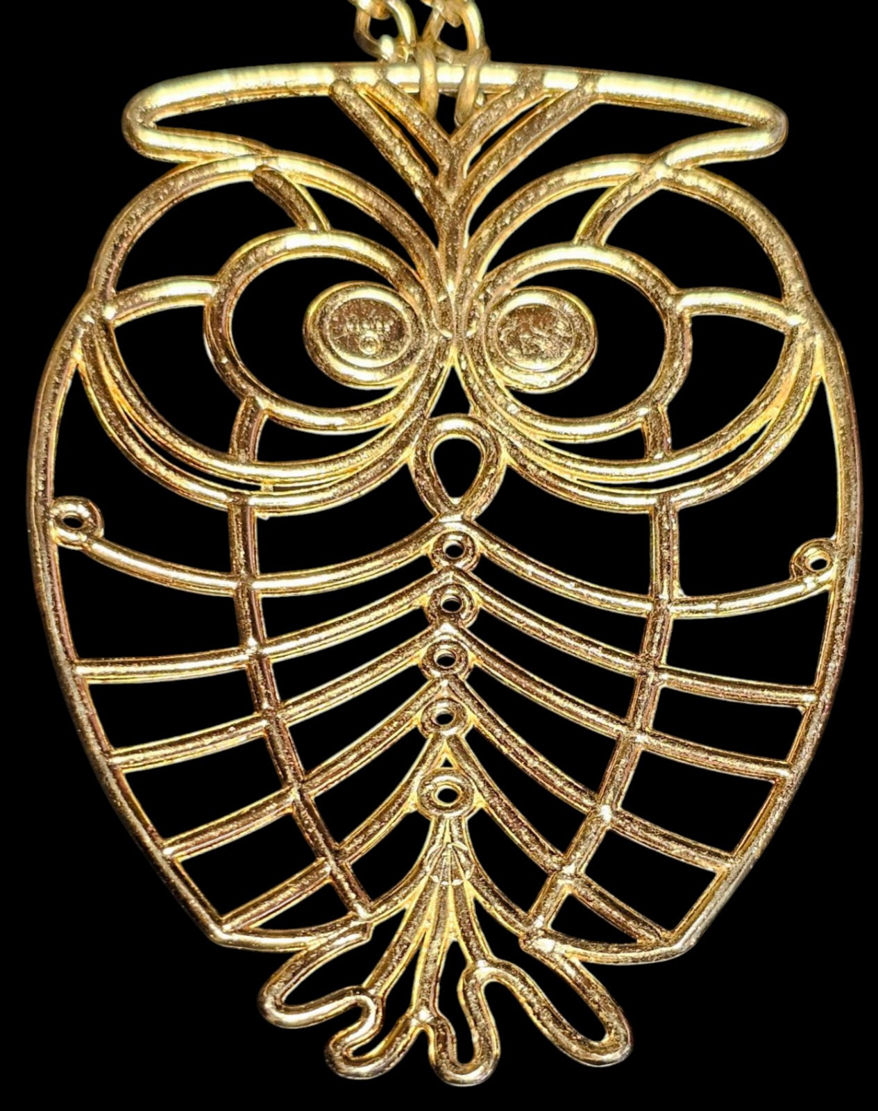 UP FOR SALE: Vintage Napier Openwork Owl Necklace 1970s Large 12KGE Statement Pendant Rare
