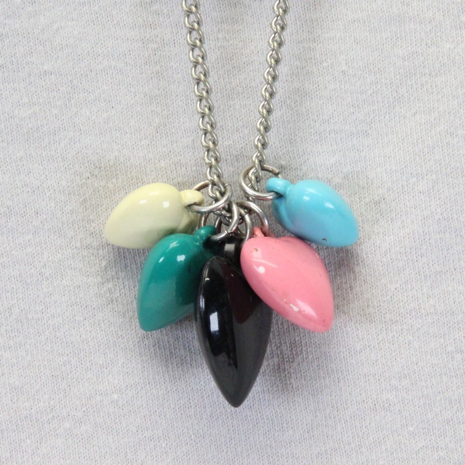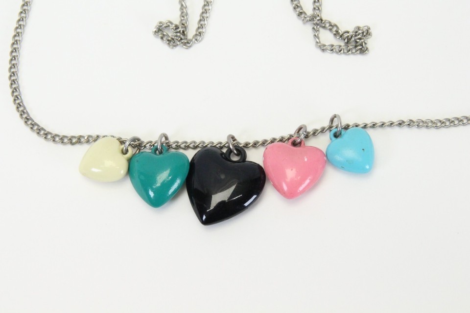 Heart Necklace Black Pink Green Teal Ivory with 30" Chain Largest Heart 1" H