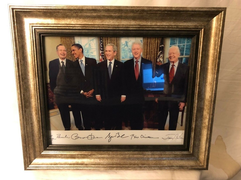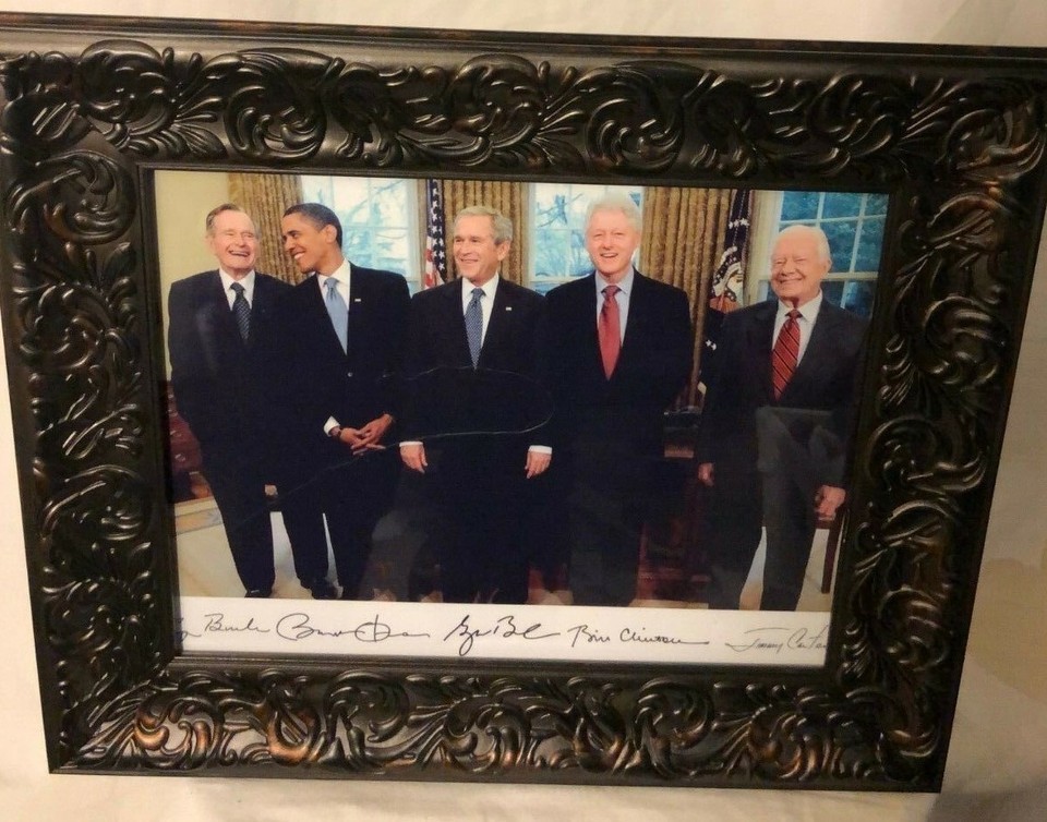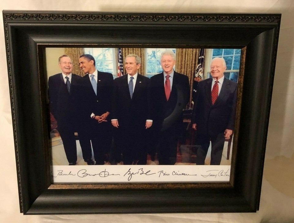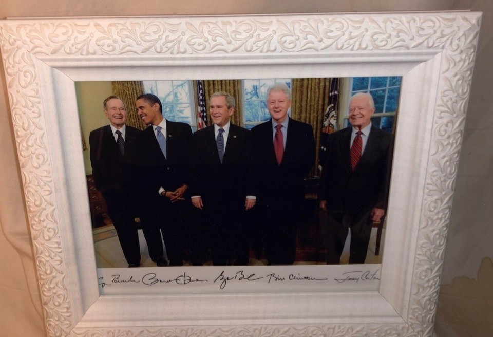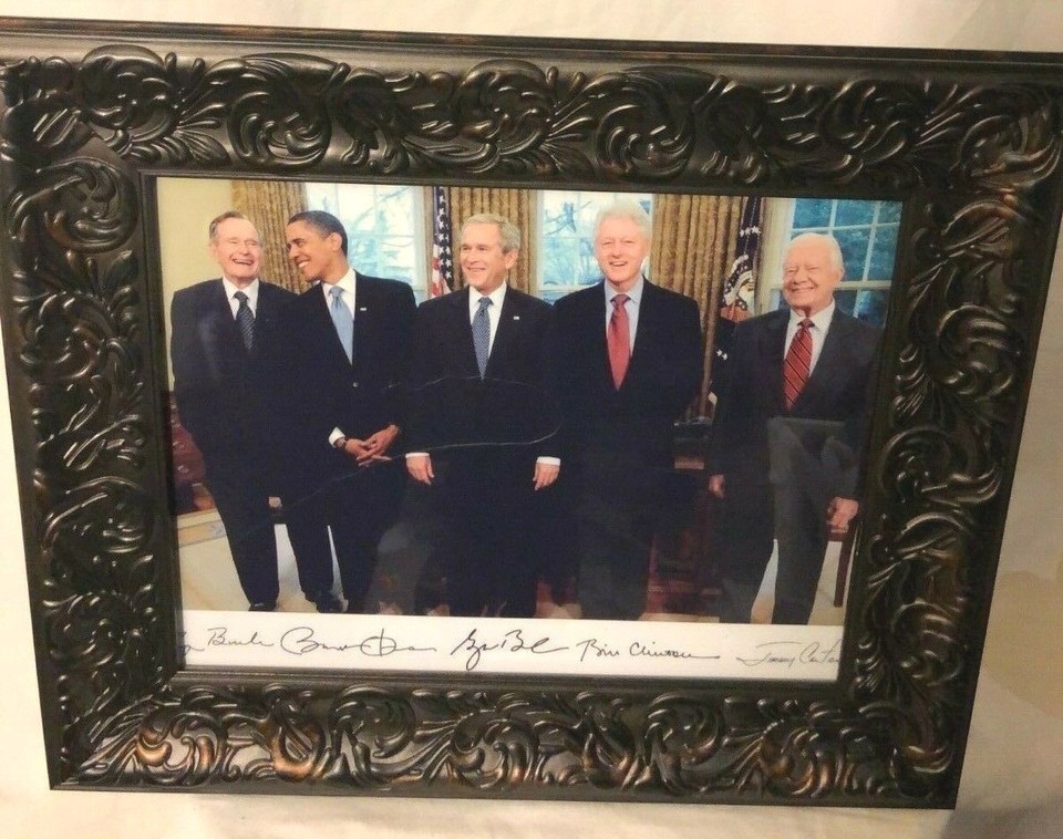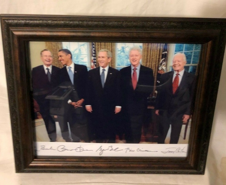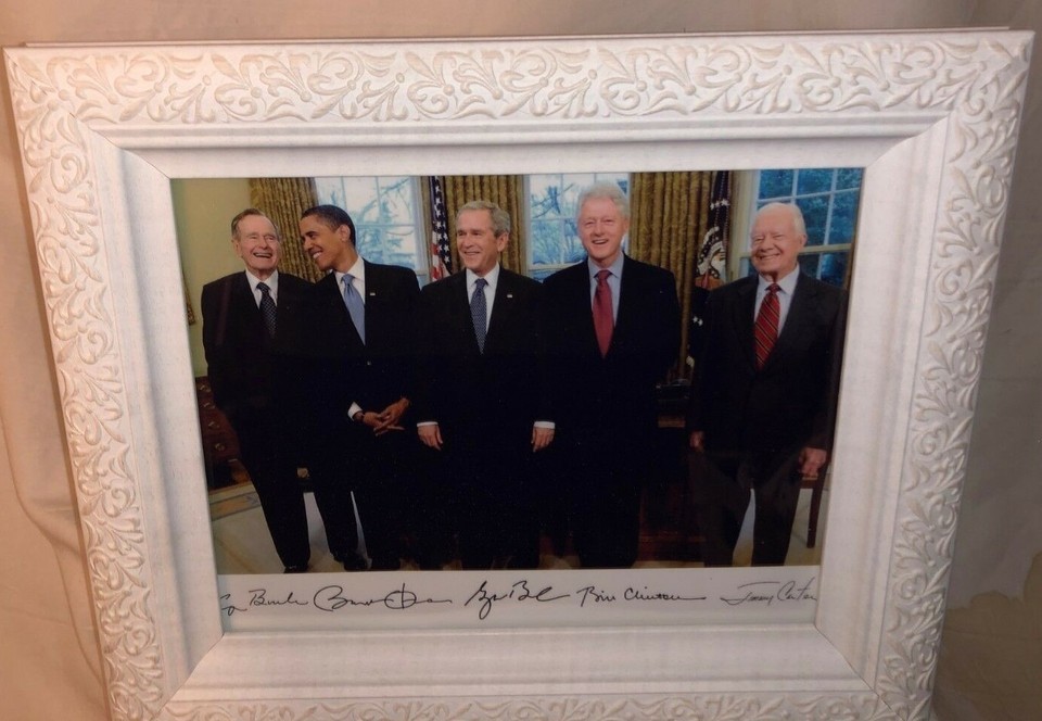 PRES GEORGE HW &W BUSH BARACK OBAMA BILL CLINTON CARTER SIGNED PUBLICITY PHOTO