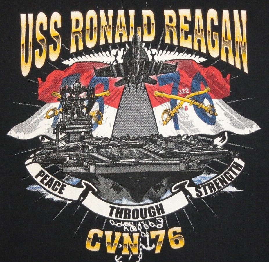 DISCONTINUED USN U.S. NAVY USS RONALD REAGAN CVN 76 372 -8 BLACK T SHIRT