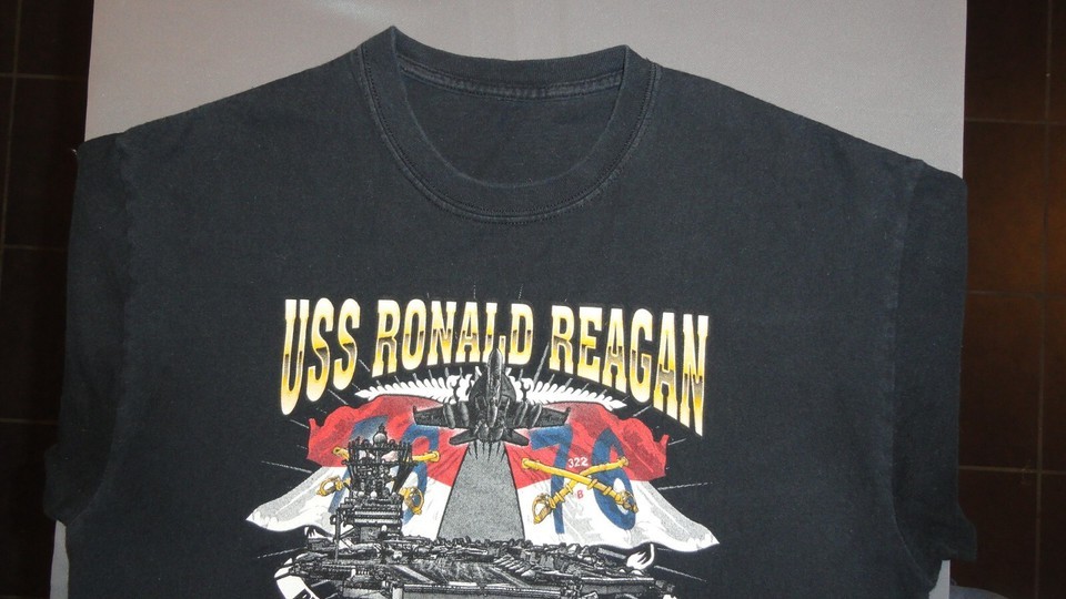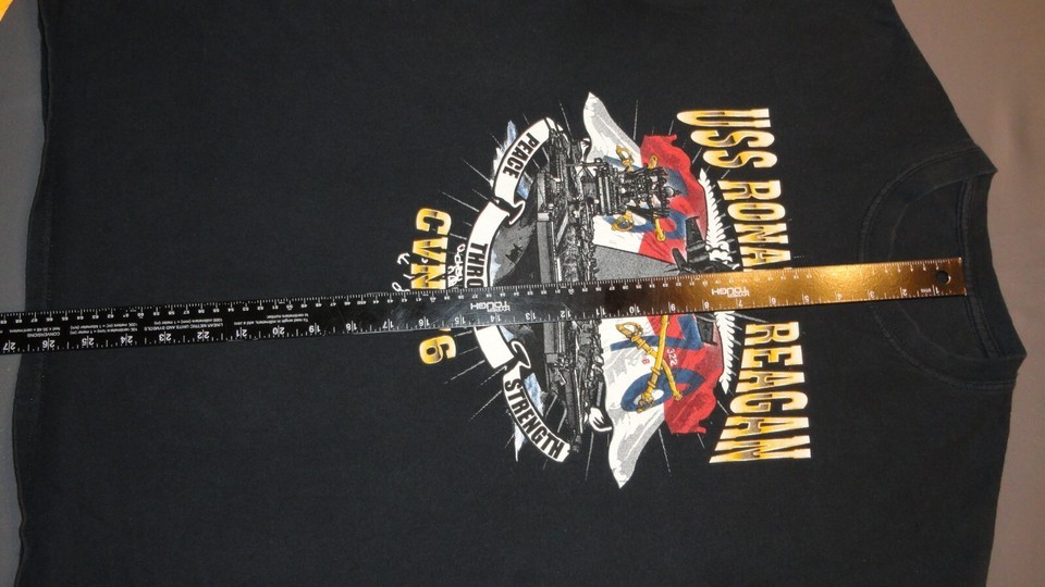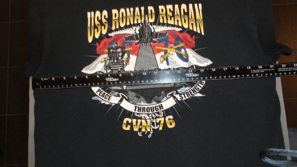 DISCONTINUED USN U.S. NAVY USS RONALD REAGAN CVN 76 372 -8 BLACK T SHIRT MEDIUM