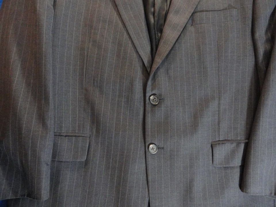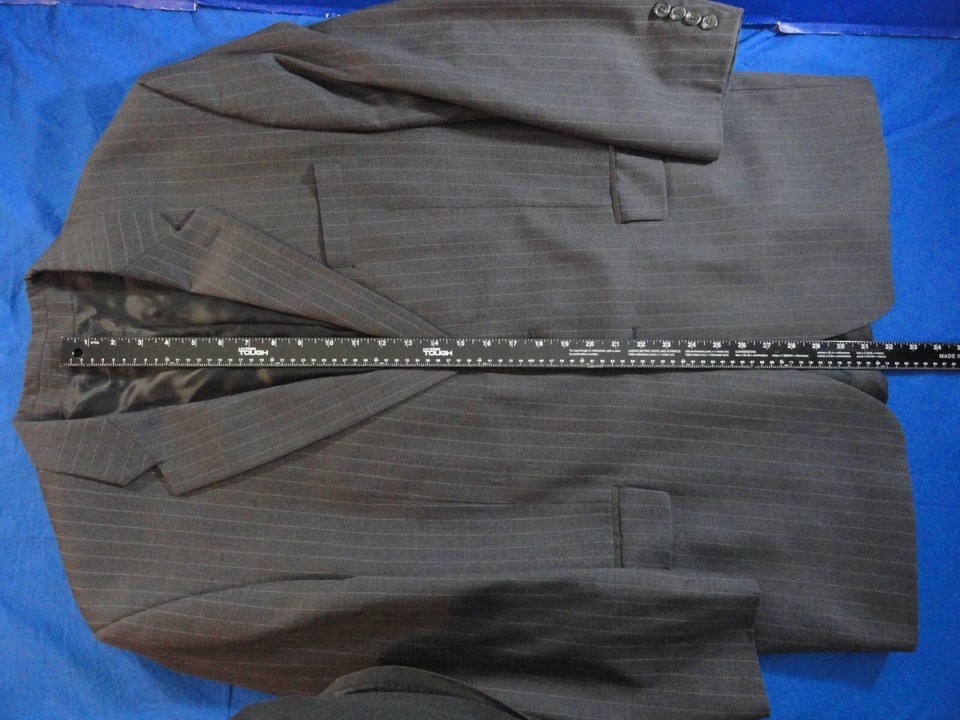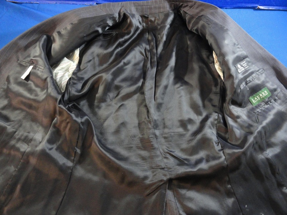 2 BUTTON DESIGNER RALPH LAUREN GRAY WITH PINSTRIPES SUIT JACKET 39R / 39 REGULAR