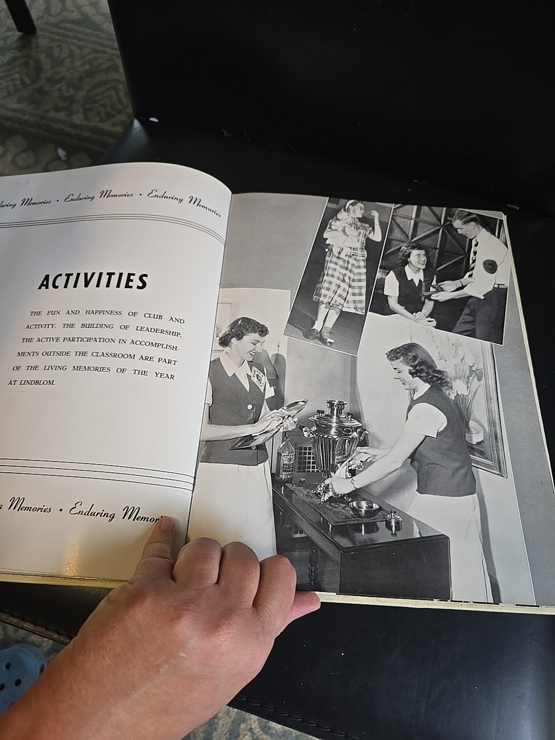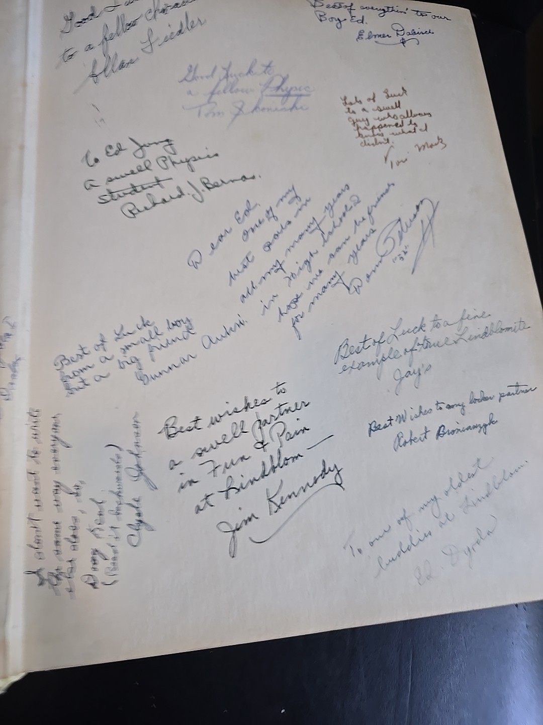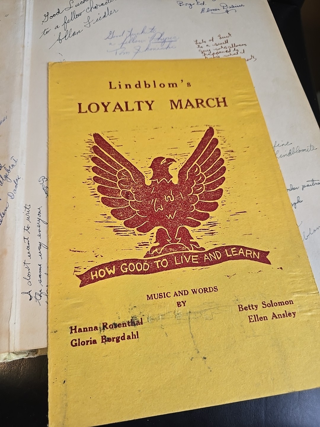 1952 lindblom High school eagle yearbook with their loyalty march music, Hall Guard certificate of Merit, playoffs flyer, and autographs galore. Also has the negatives/proofs of the senior who owned the yearbook but those appear damaged to me.