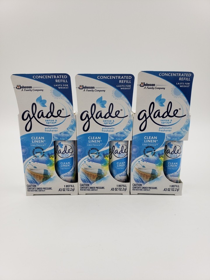 Glade Sense & Spray Automatic Freshener Refills Clean Linen 0.43 Oz - Lot of 3