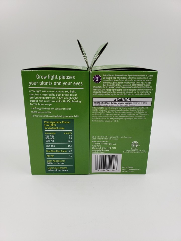 GE Grow Light 9W LED Advanced Red Light Spectrum for Flowers & Fruits X2*