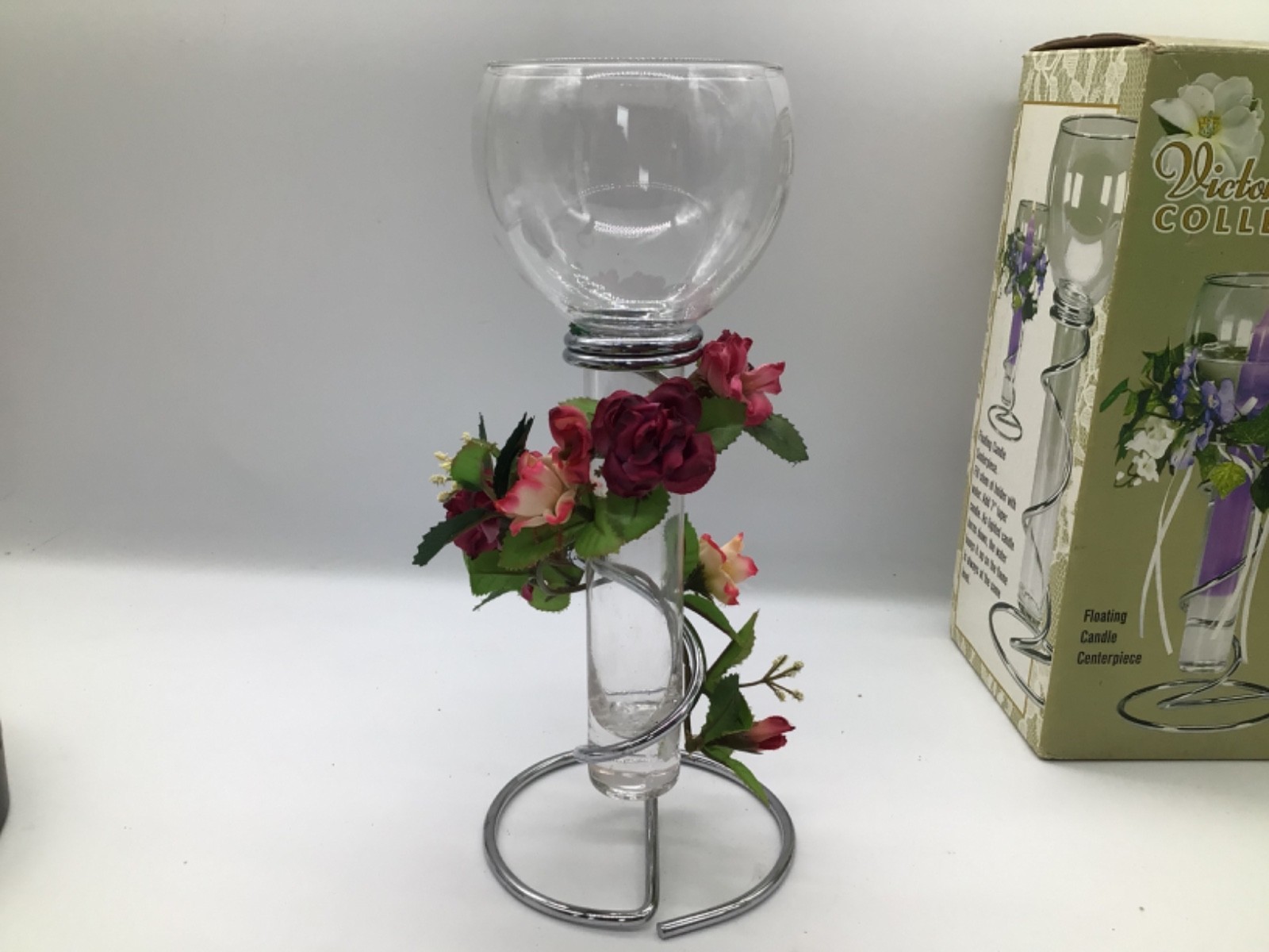 Victoria Lynn Collection Floating Candle Holder Glass w/ Metal Stand 10.25”