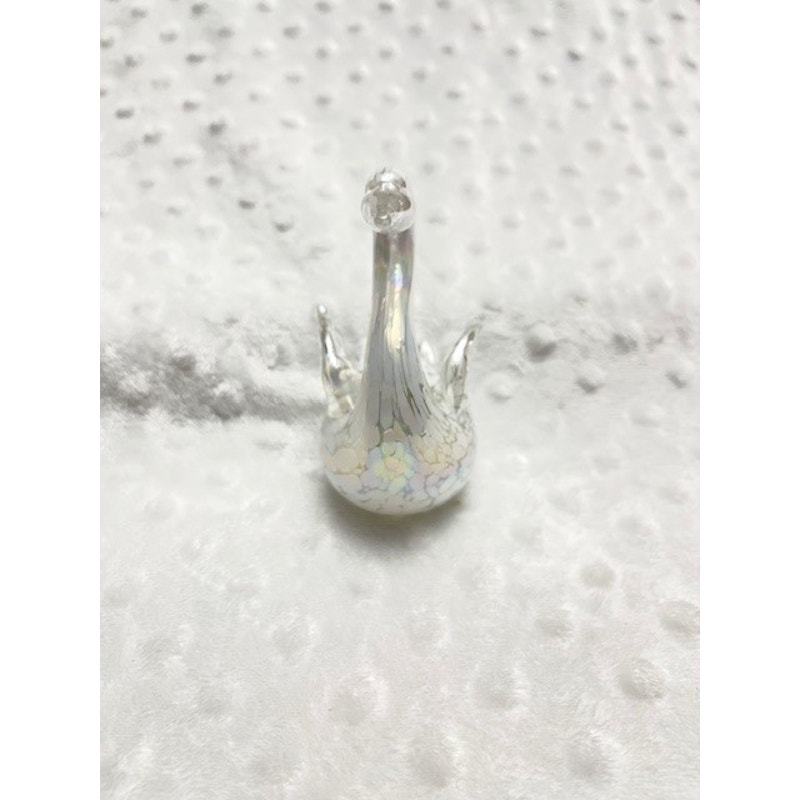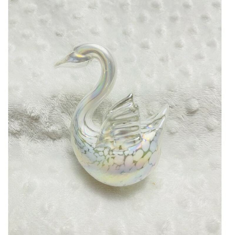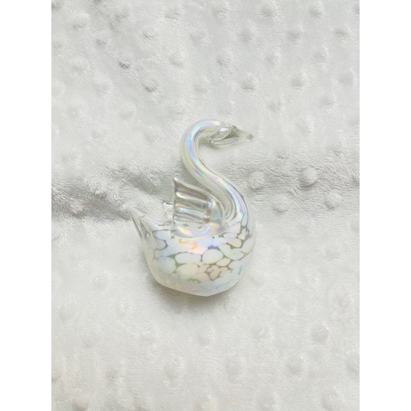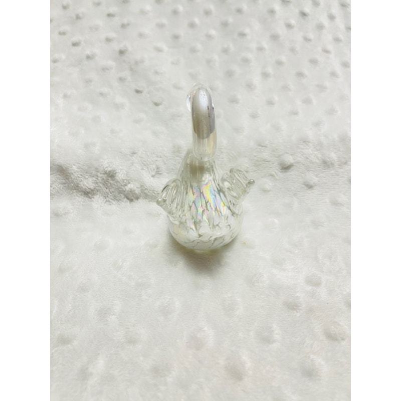 Vintage Viking White Spotted Iridescent Rainbow Lustre Glass Swan