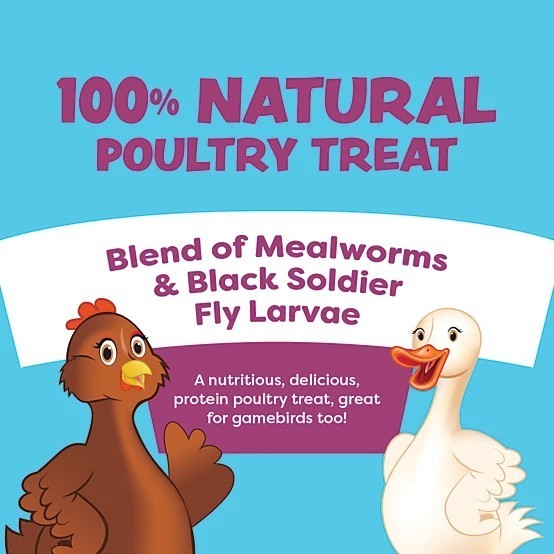 The Flock Party Dynamic Duo Poultry Treats help you reward your backyard beauties for each spectacular egg and every entertaining moment by providing a wide variety of tasty, high-quality protein meals and treats that your flock deserves along with coop-tastic products you desire. We celebrate by knowing both you and your flock are fully satisfied. These delicious and nutritious poultry treats are a great source of natural protein. The Flock Party poultry treats feature mealworms and black solider fly larvae.100% Satisfaction Guaranteed!