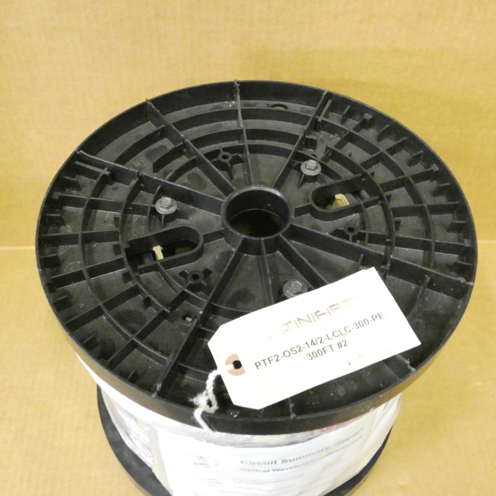 300-meter, armored, single-mode fiber optic cable with two fibers and two electrical conductors.