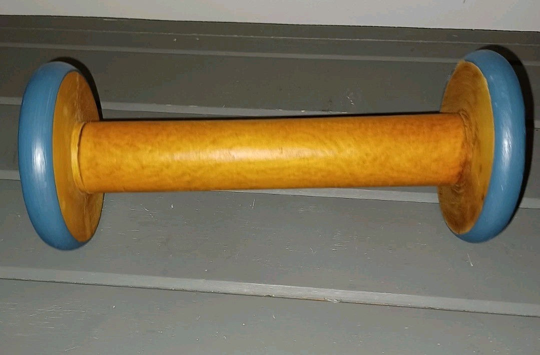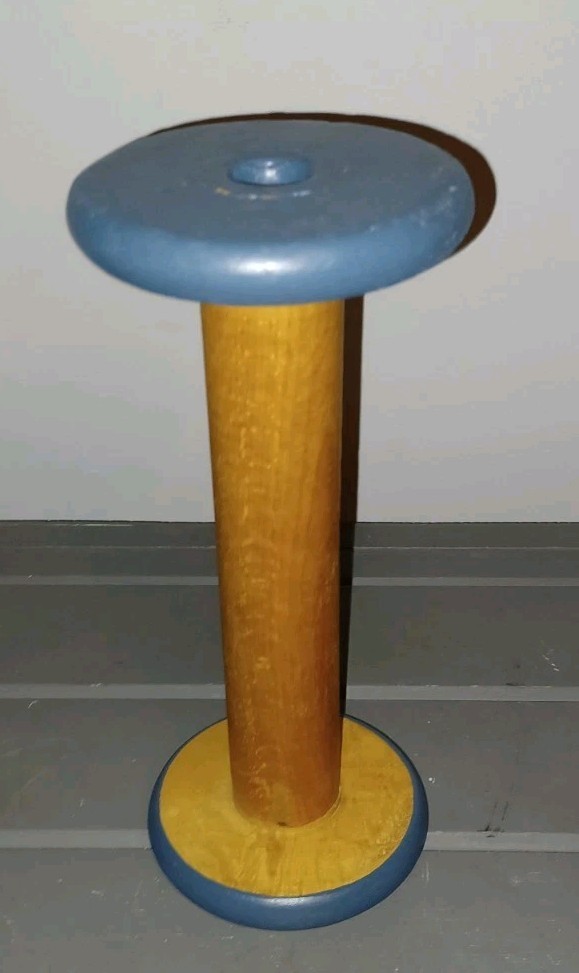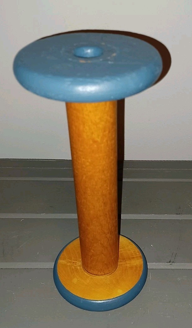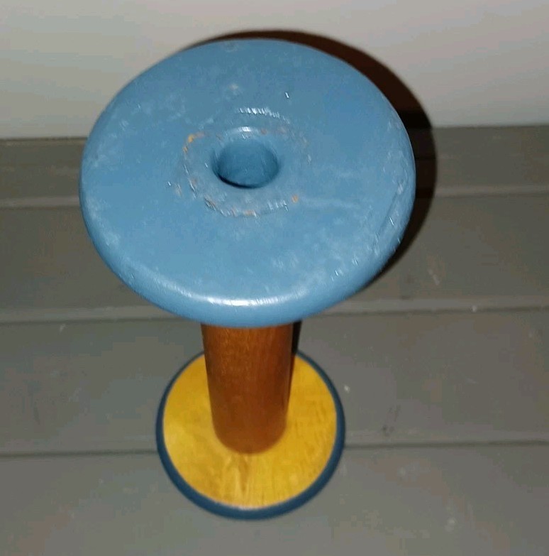 Vintage Large Wooden Blue Industrial Textile Mill Spool Spindles 9? Candlestick 3.75" wide