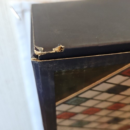 Gorgeous decorative game board is the top of this solid wood storage cabinet